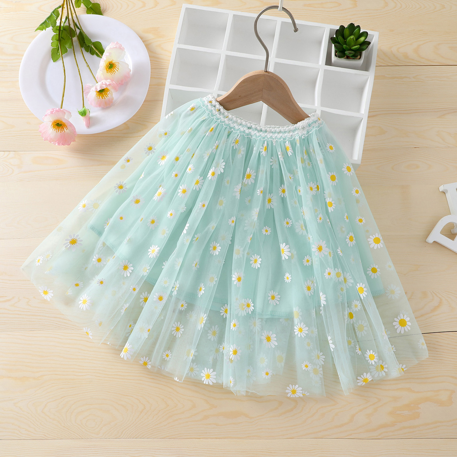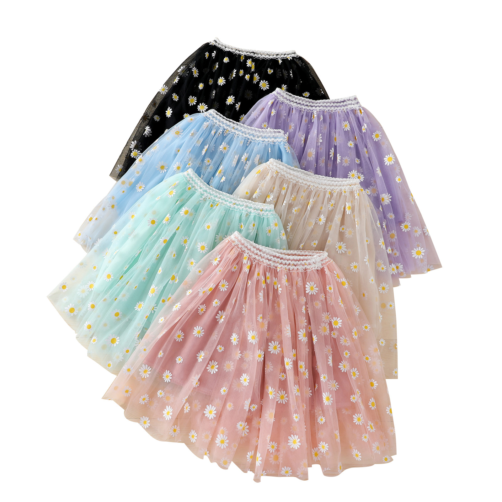 Одежда для маленьких девочек платье миди Тюлевая юбка, Милые ромашки с эластичной резинкой на талии и принтом 3-Слои юбка-пачка