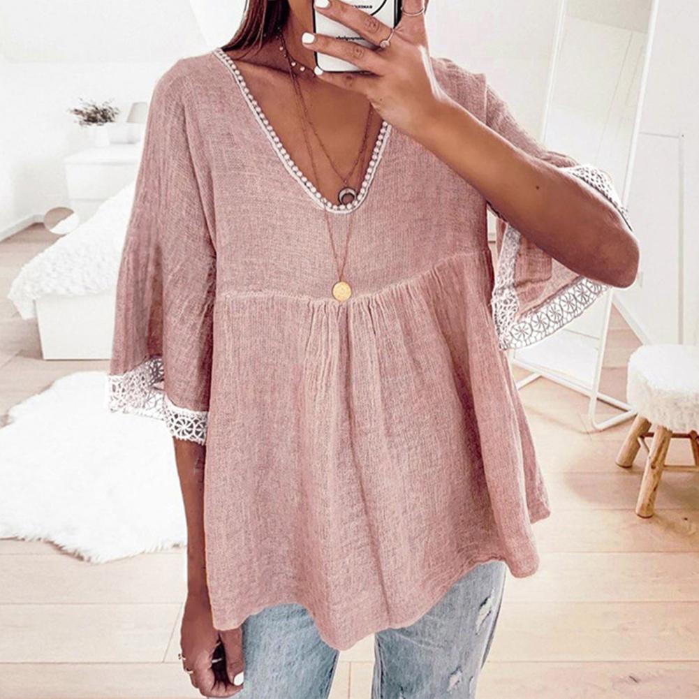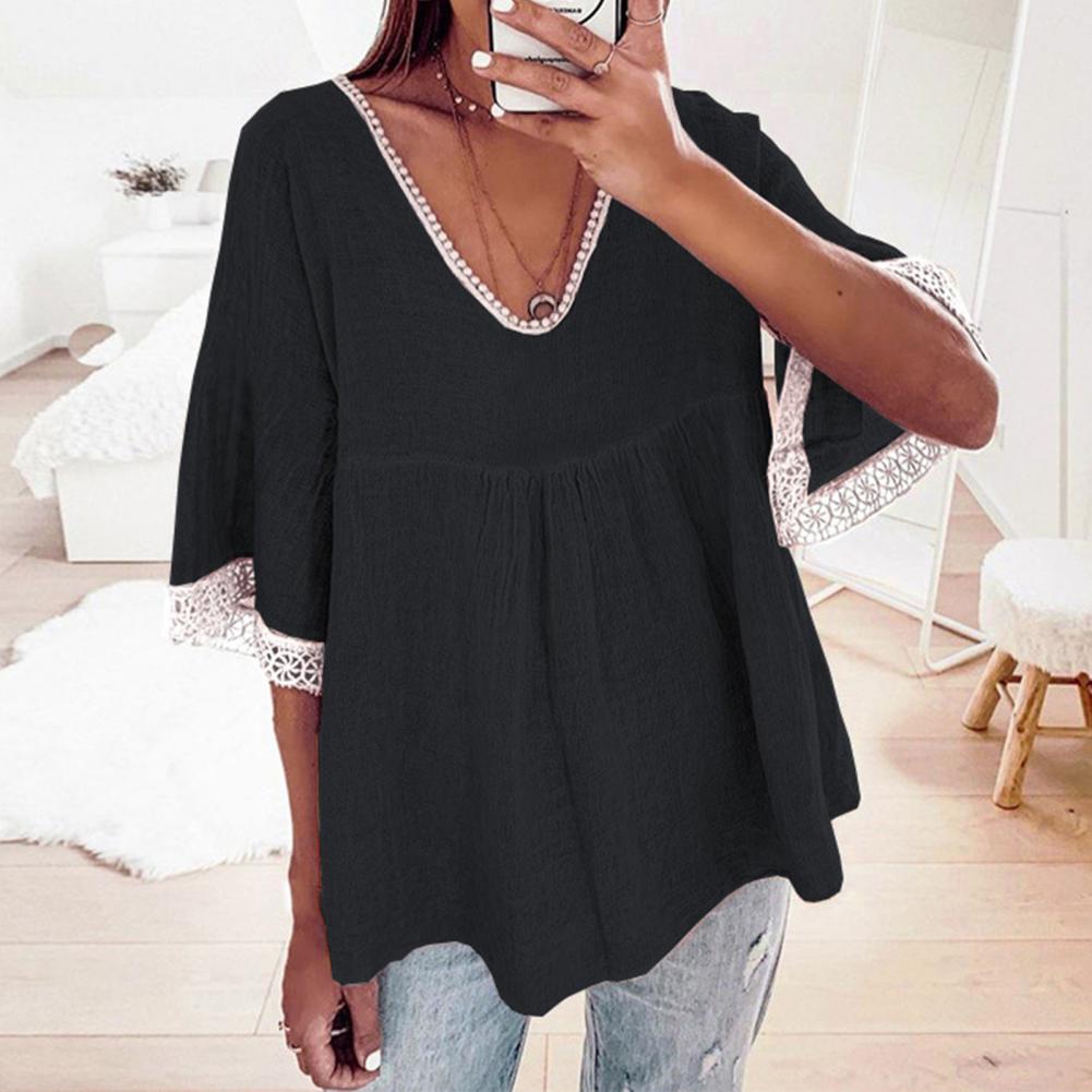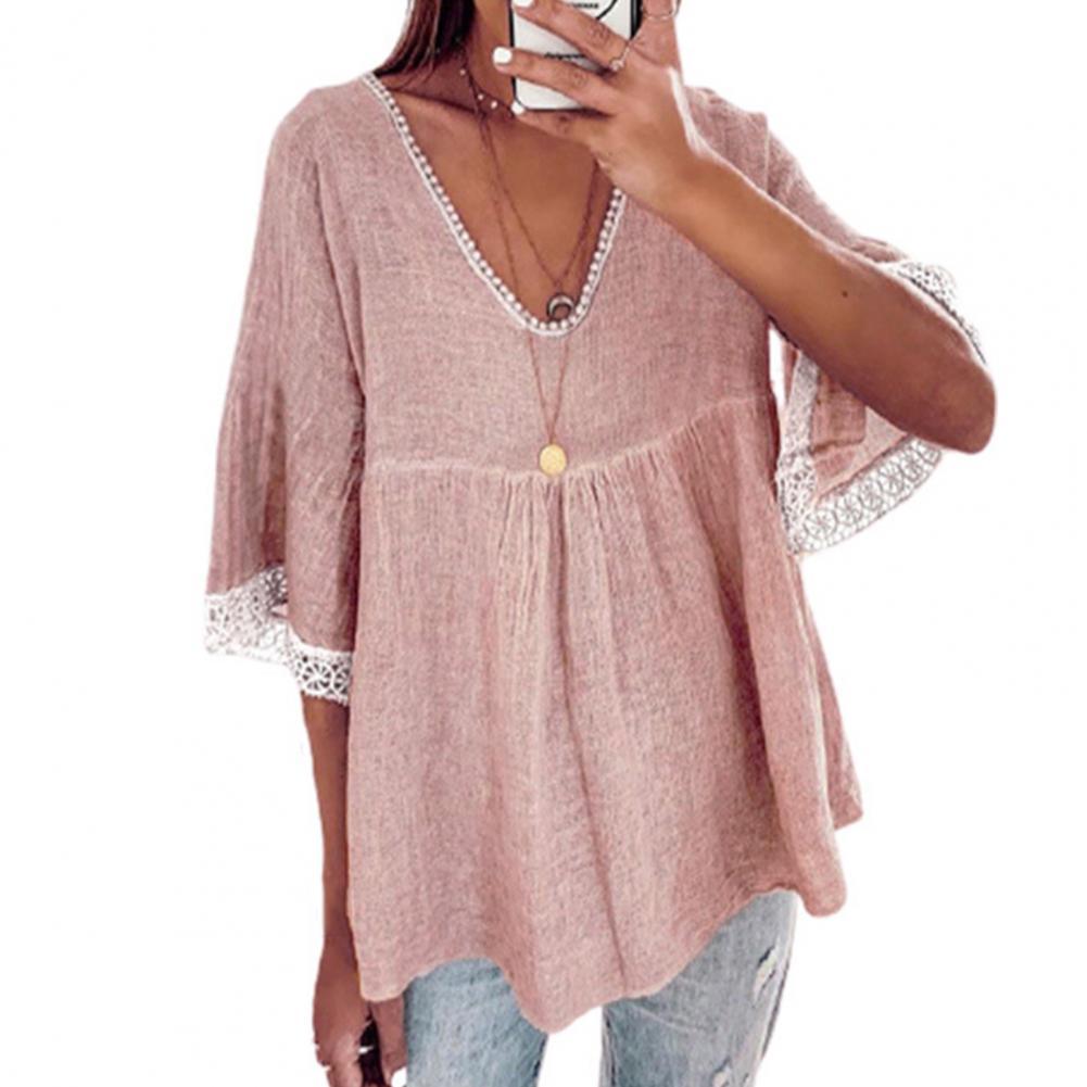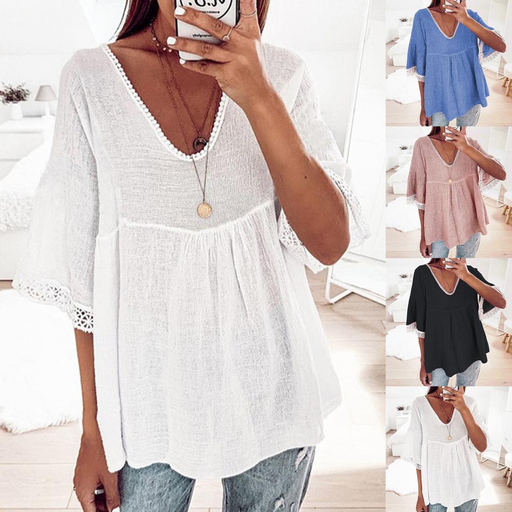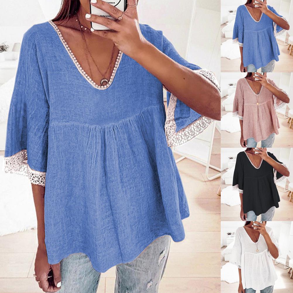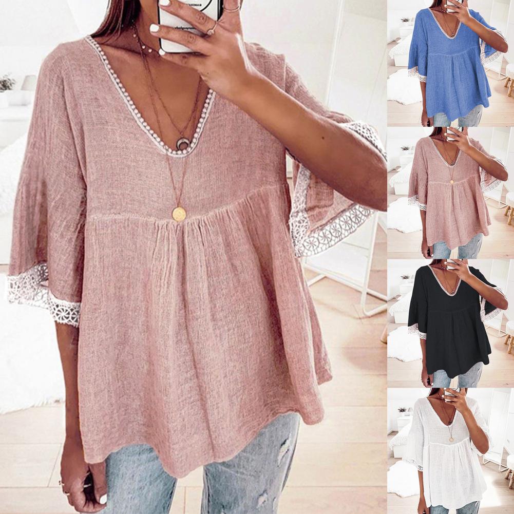 Your skin will not be harmed because the large size and loose blouse with solid color and V-neck design are made of soft and skin-friendly material and they will be worn comfortably.