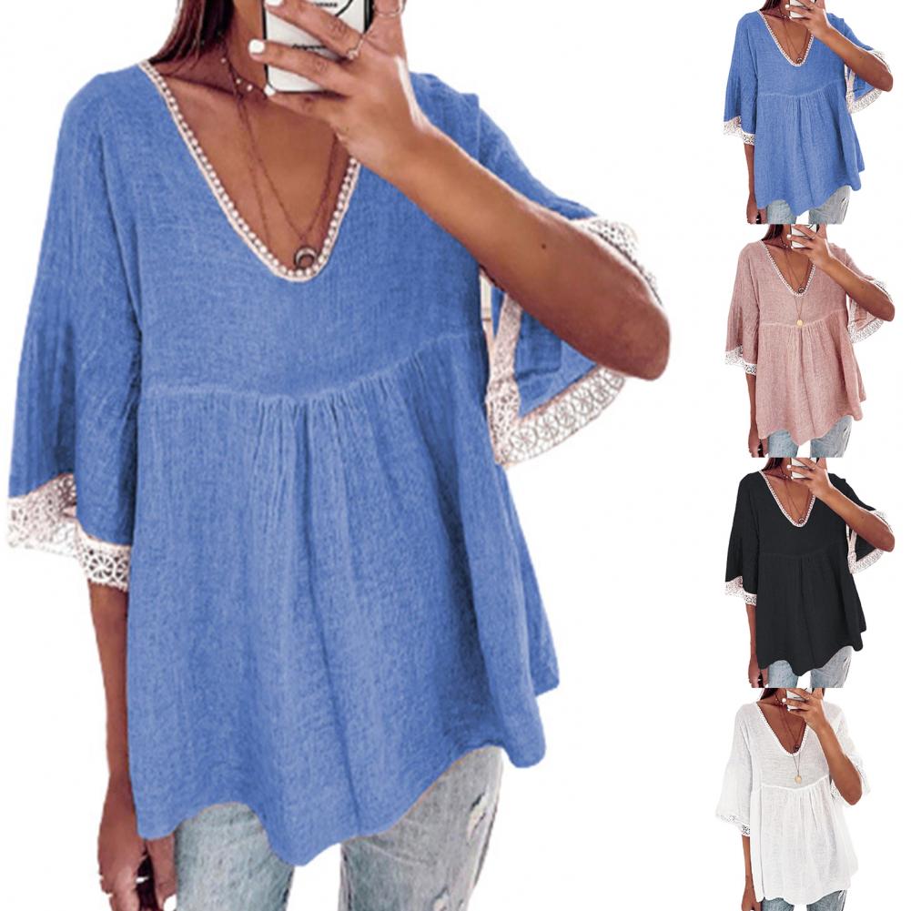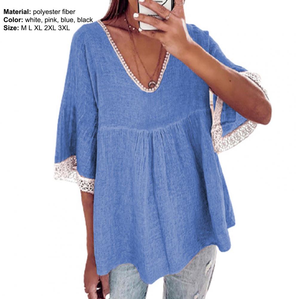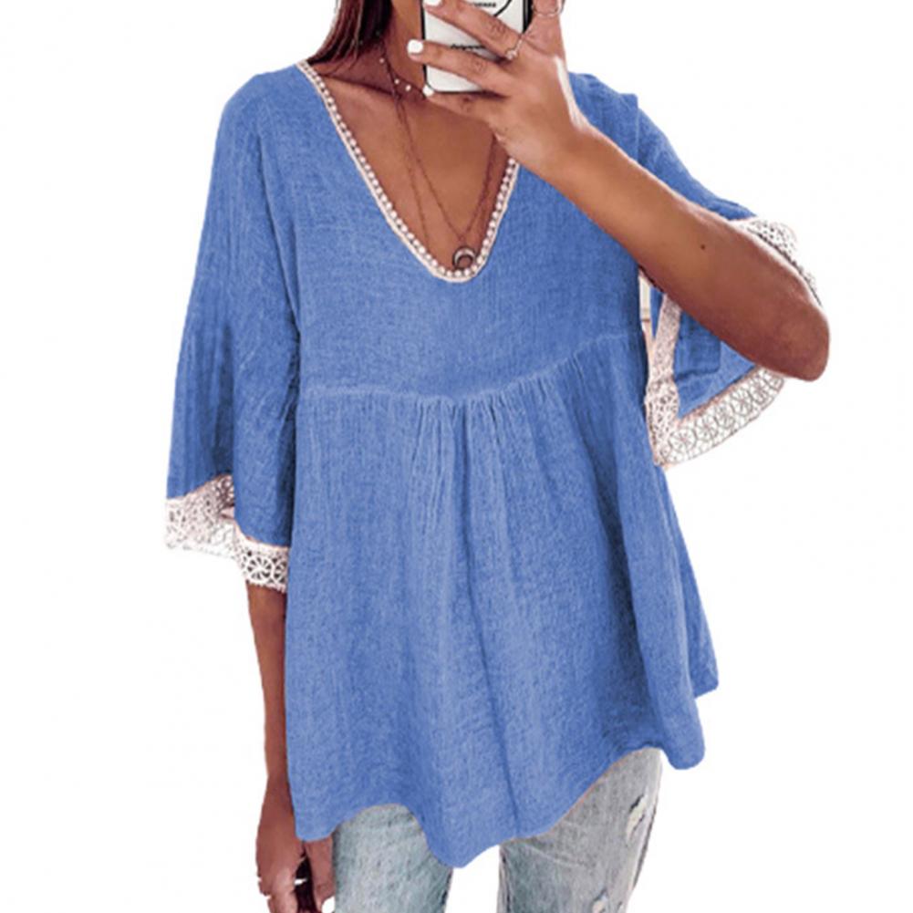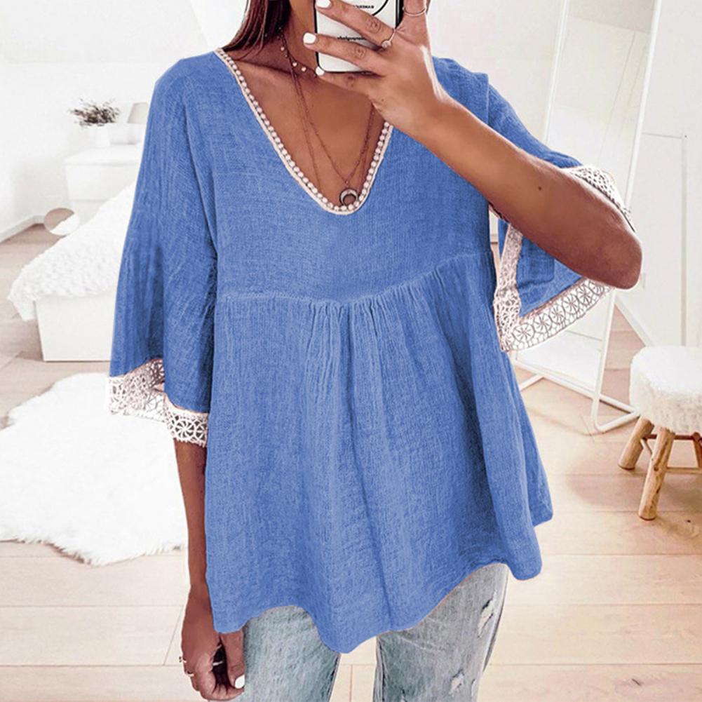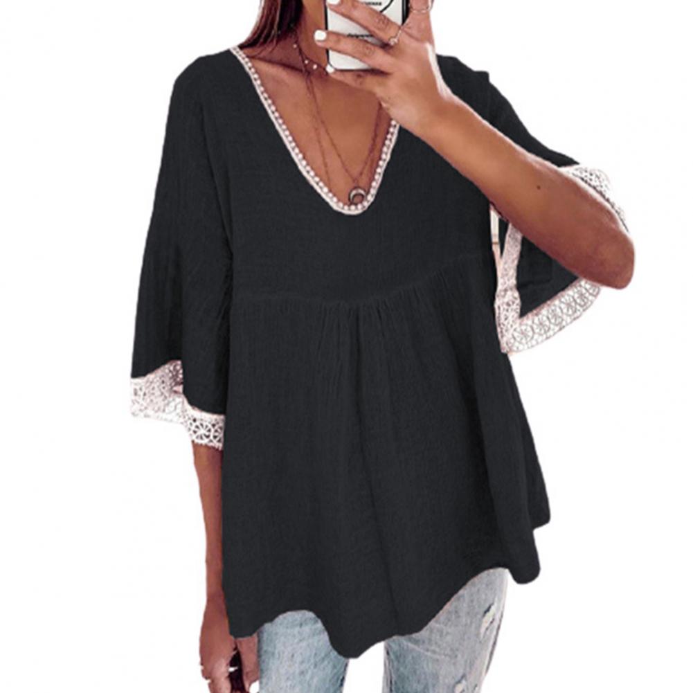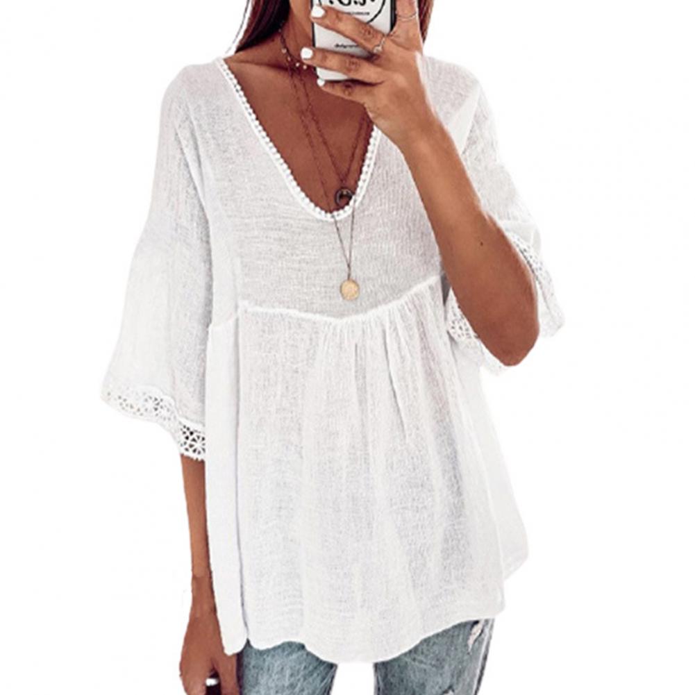 Your skin will not be harmed because the large size and loose blouse with solid color and V-neck design are made of soft and skin-friendly material and they will be worn comfortably.