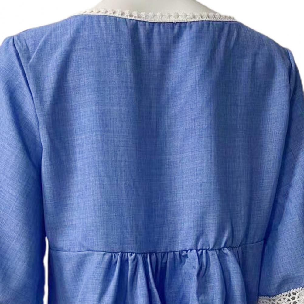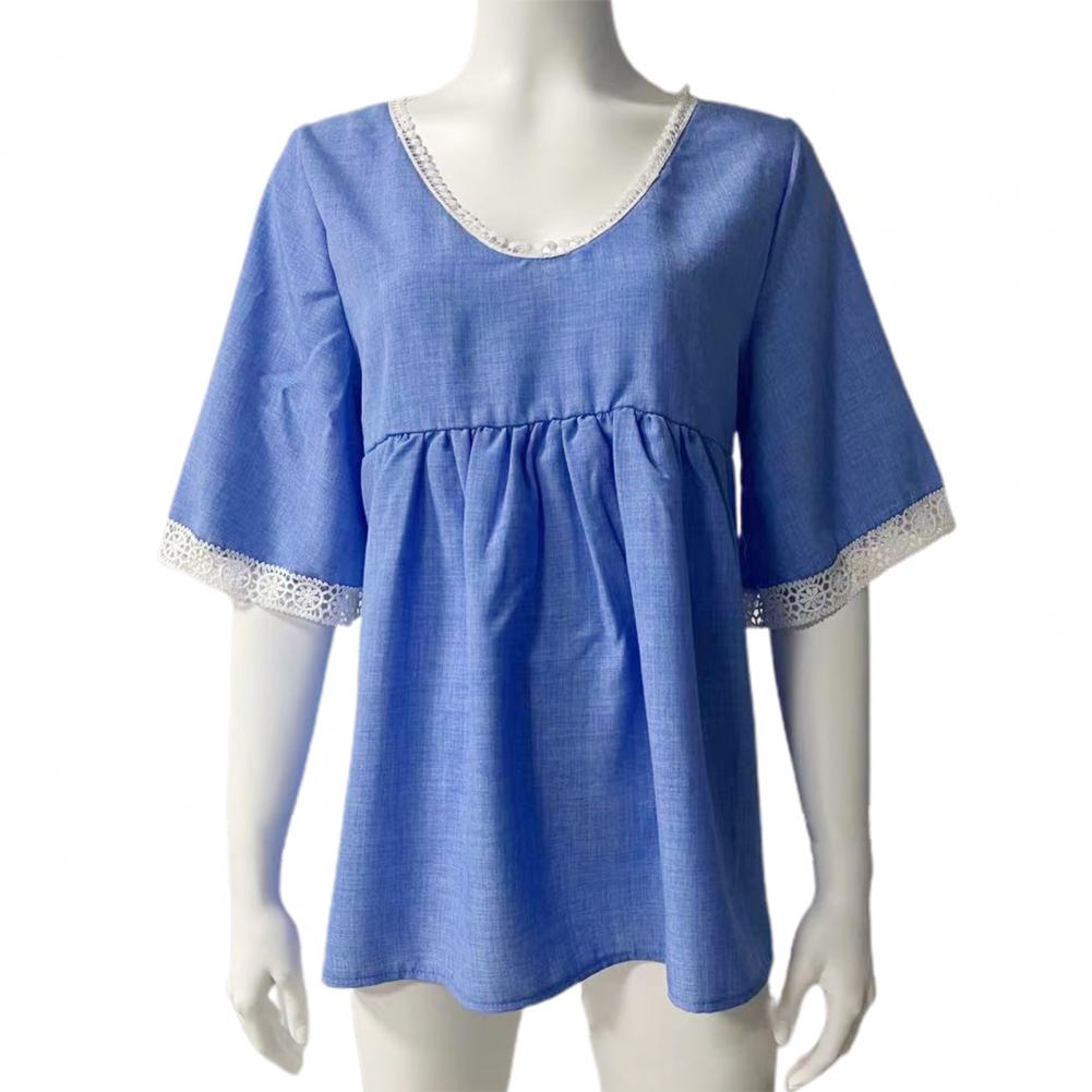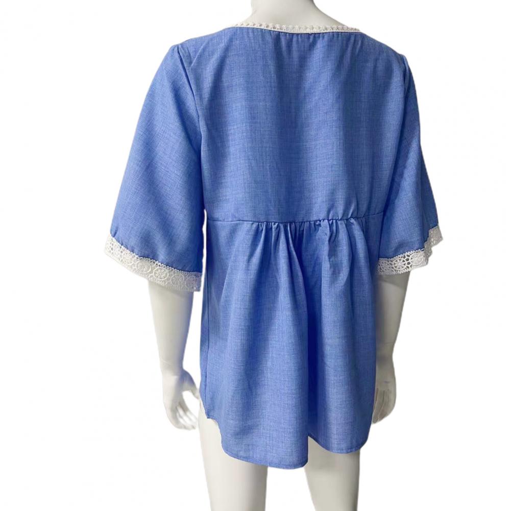 Blouse Splicing V-neck Lace Elbow Sleeve Female Shirt Clothing for Spring