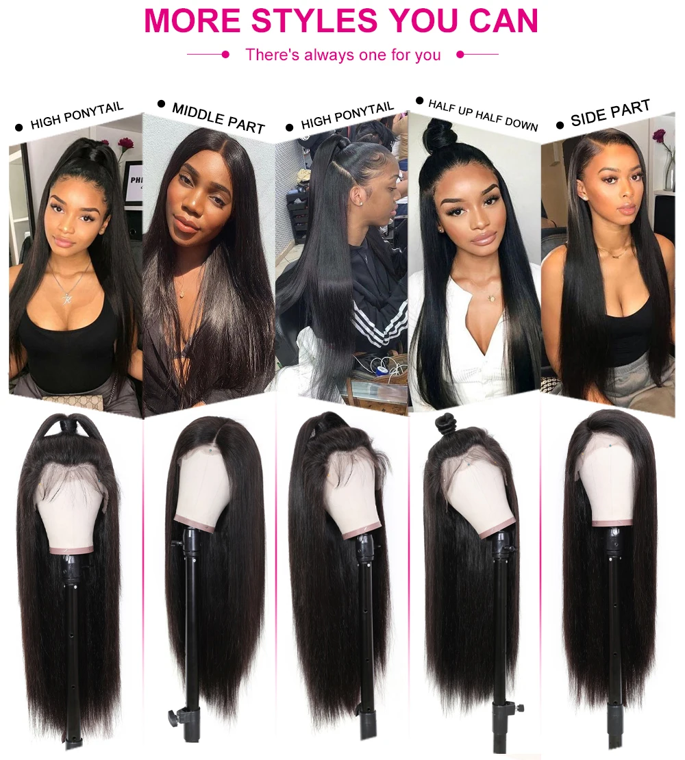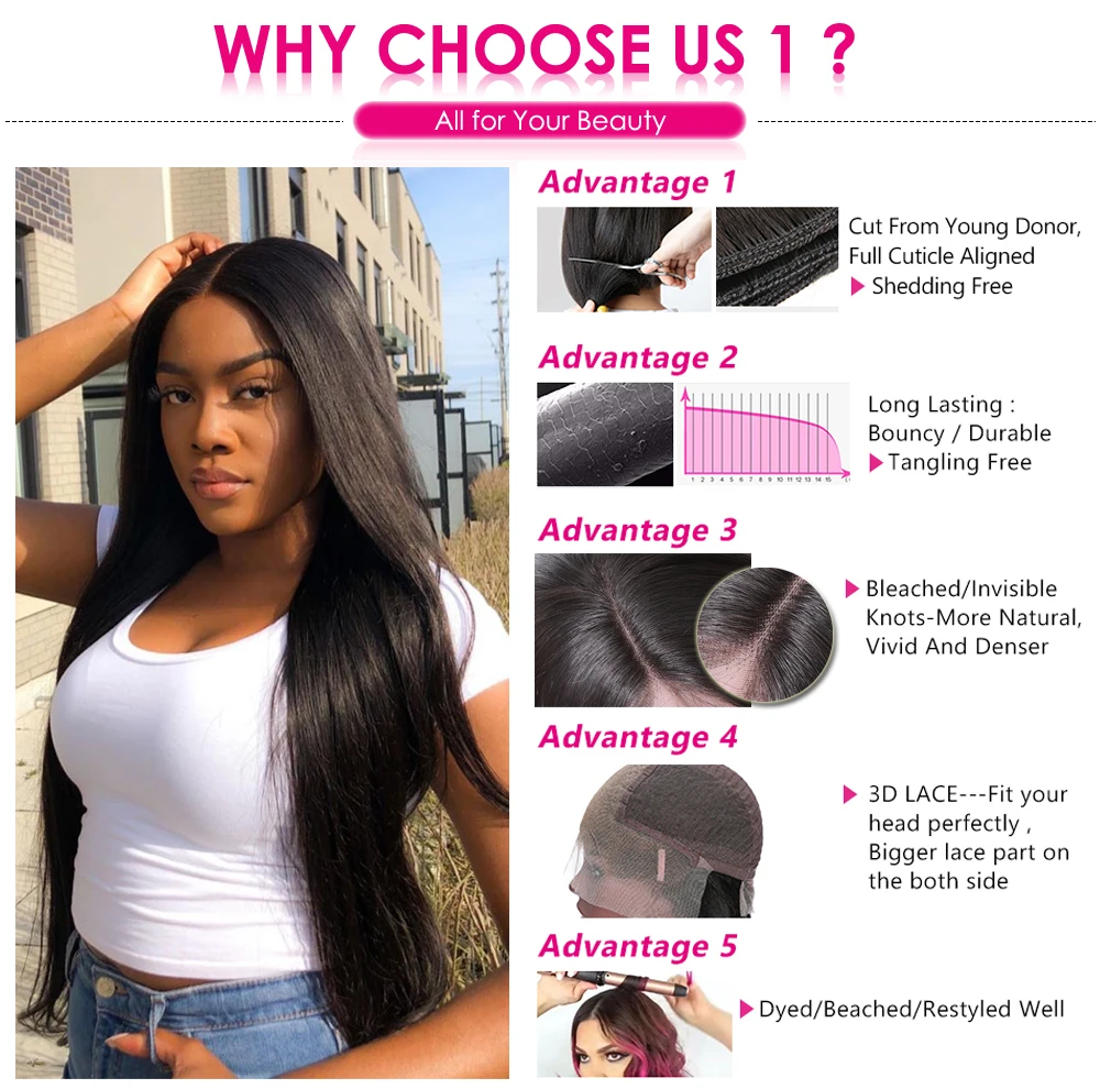 100% Human Hair Brazilian Straight Top Quality Lace Front Wig with Pre Plucked Natural Hairline.