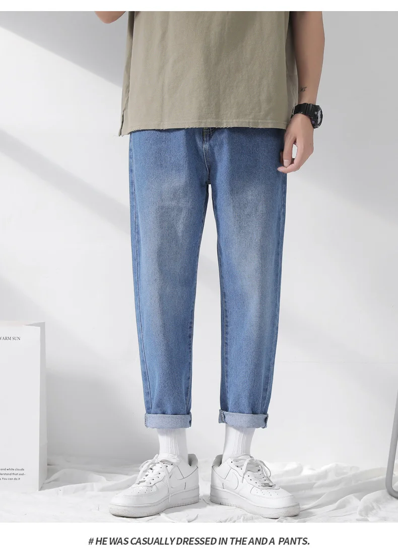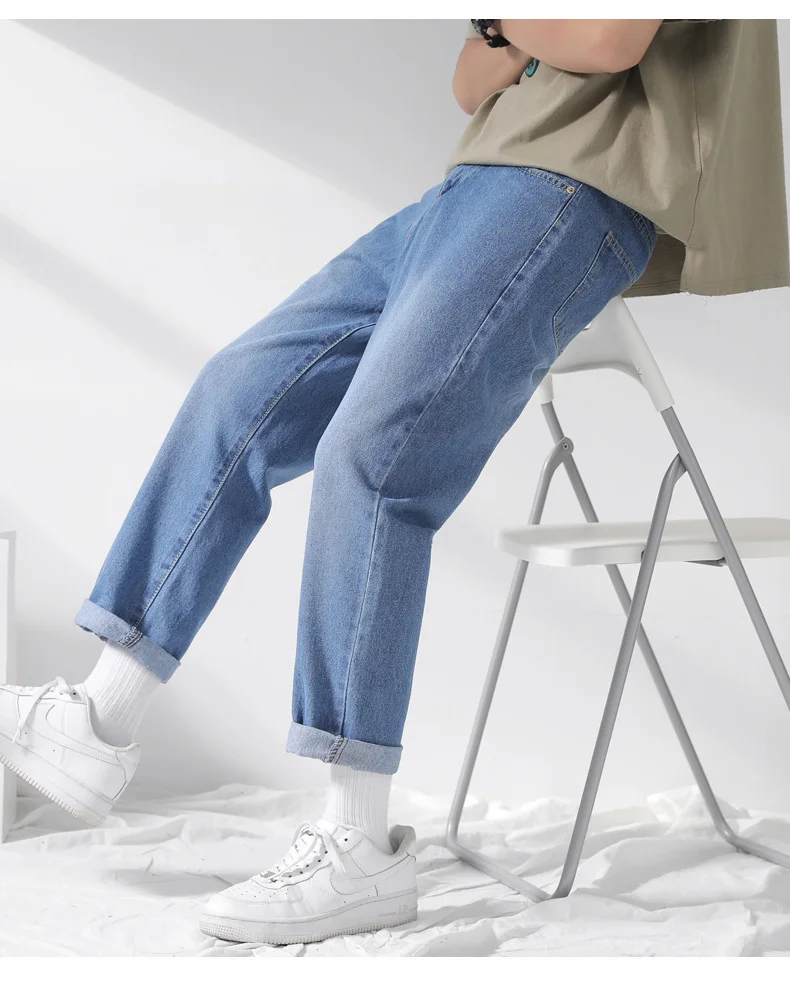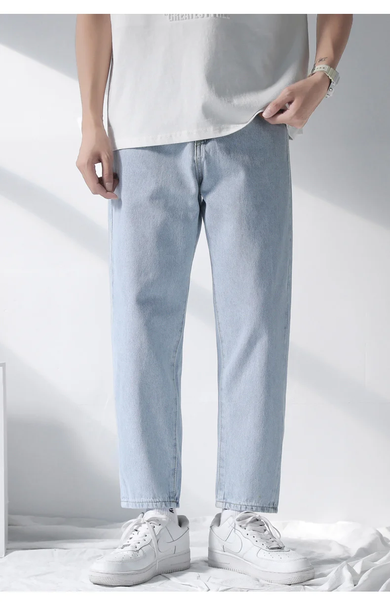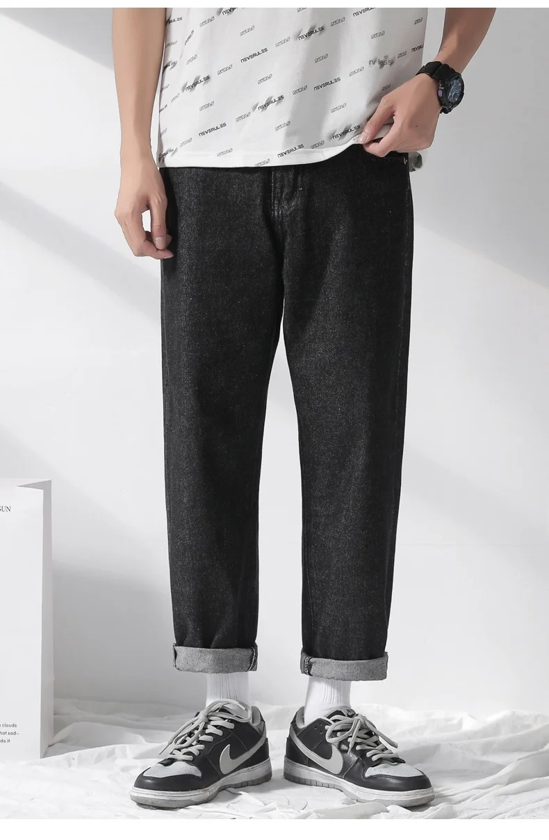 Джинсы мужские свободного покроя однотонные Модные шаровары средней длины на