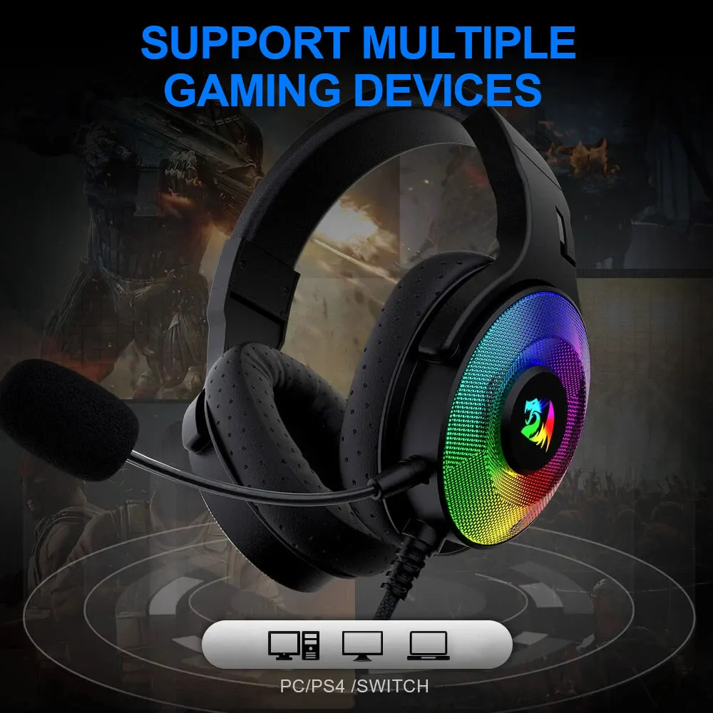 Область с подсветкой покрывает всю поверхность ушных чашек, большой логотип Redragon под плотной сеткой, все идеально подходит для веры RGB.