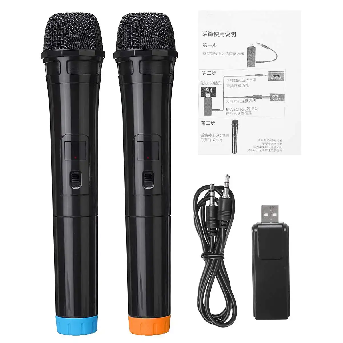 Особенности: -Качество звука сцены:Высокое качество передачи звука, чистый голос и без отзывы, без искажений. Этот портативный беспроводной микрофон предназначен для голосового использования в режиме реального времени, усиления звука и студийной записи. -Простая настройка:Подключи и играй, нет необходимости в приложении или конфигурации, прост в использовании. Микрофон использует 2 * батарейки AA, с беспроводным мини-приемником, предлагая вам большую свободу движения на сцене или в доме. Для этого микрофона один мини-приемник работает с двумя микрофонами. -Многофункциональные приложения:Идеальный выбор для караоке вечерние, DJ, свадебные хосты, церковь, деловые встречи, занятия в классе, выступления на свежем воздухе или на сцене. Технология UHF позволяет использовать несколько наборов вместе, не беспокоясь о помехе друг с другом. Характеристики: