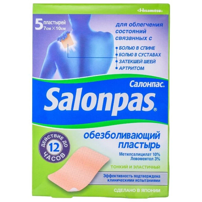 | Фармакологическое действие | В основе обезболивающего пластыря «Салонпас» лежат трансдермальные технологии доставки лекарств (TDDS) к месту повреждения, это дает действующим веществам возможность быстрее проникать непосредственно к участку воспаления и эффективно уменьшать боль. Пластырь помогает расслабить глубокие мышцы, облегчая боль в шее, спине, плечах.; |
