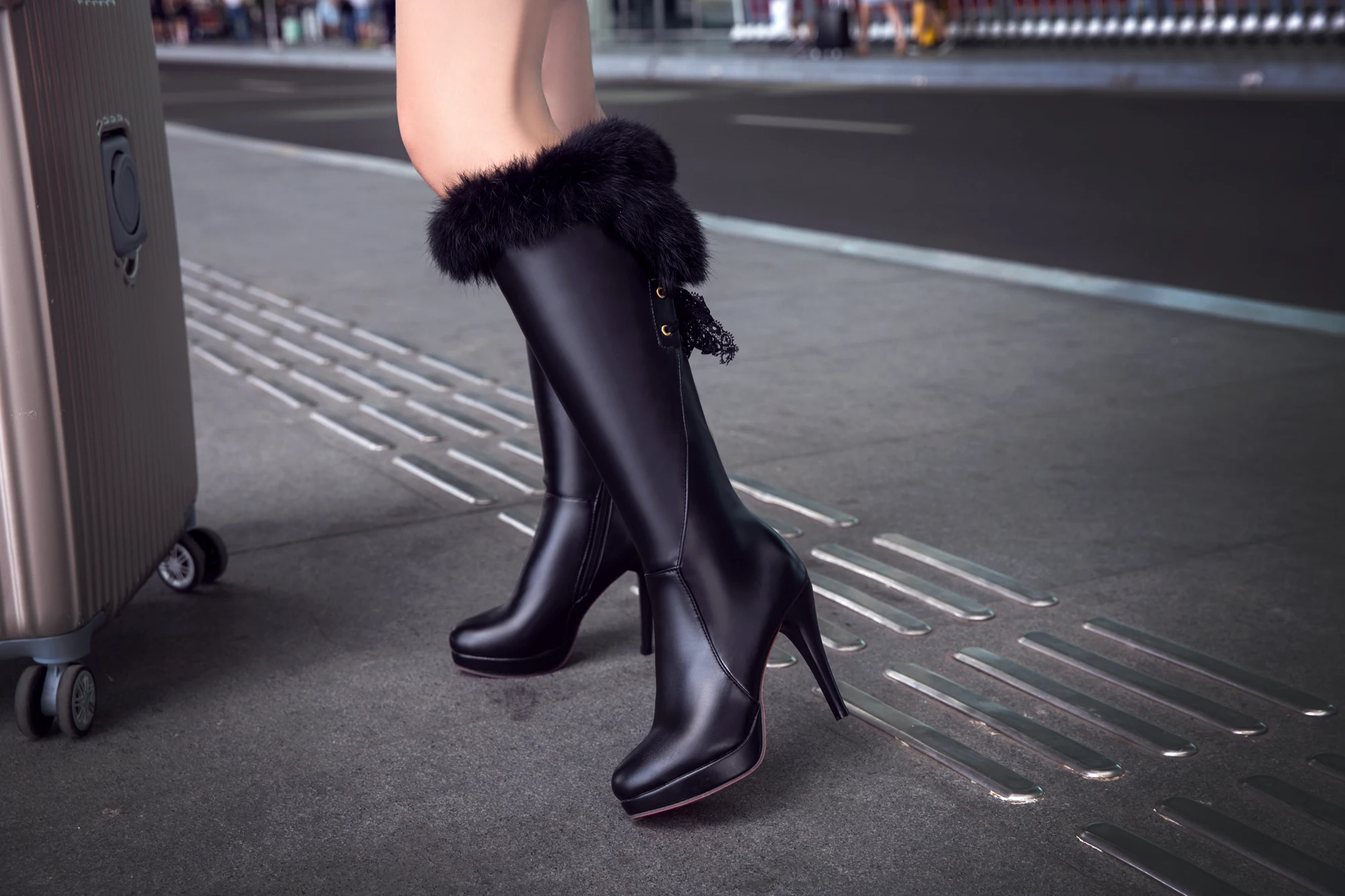 Женские ботинки на платформе Gdgydh черные кожаные до колена шнуровке в готическом