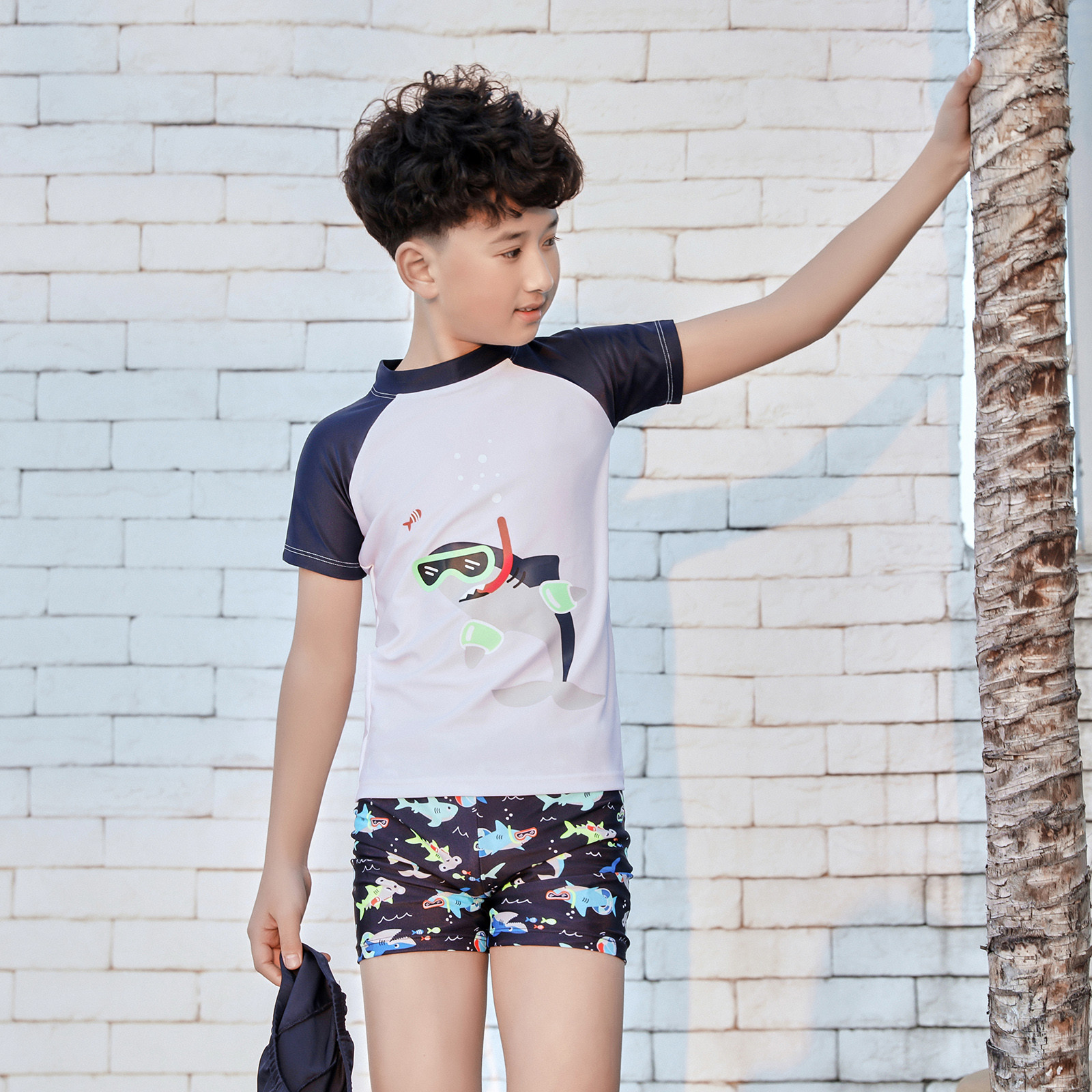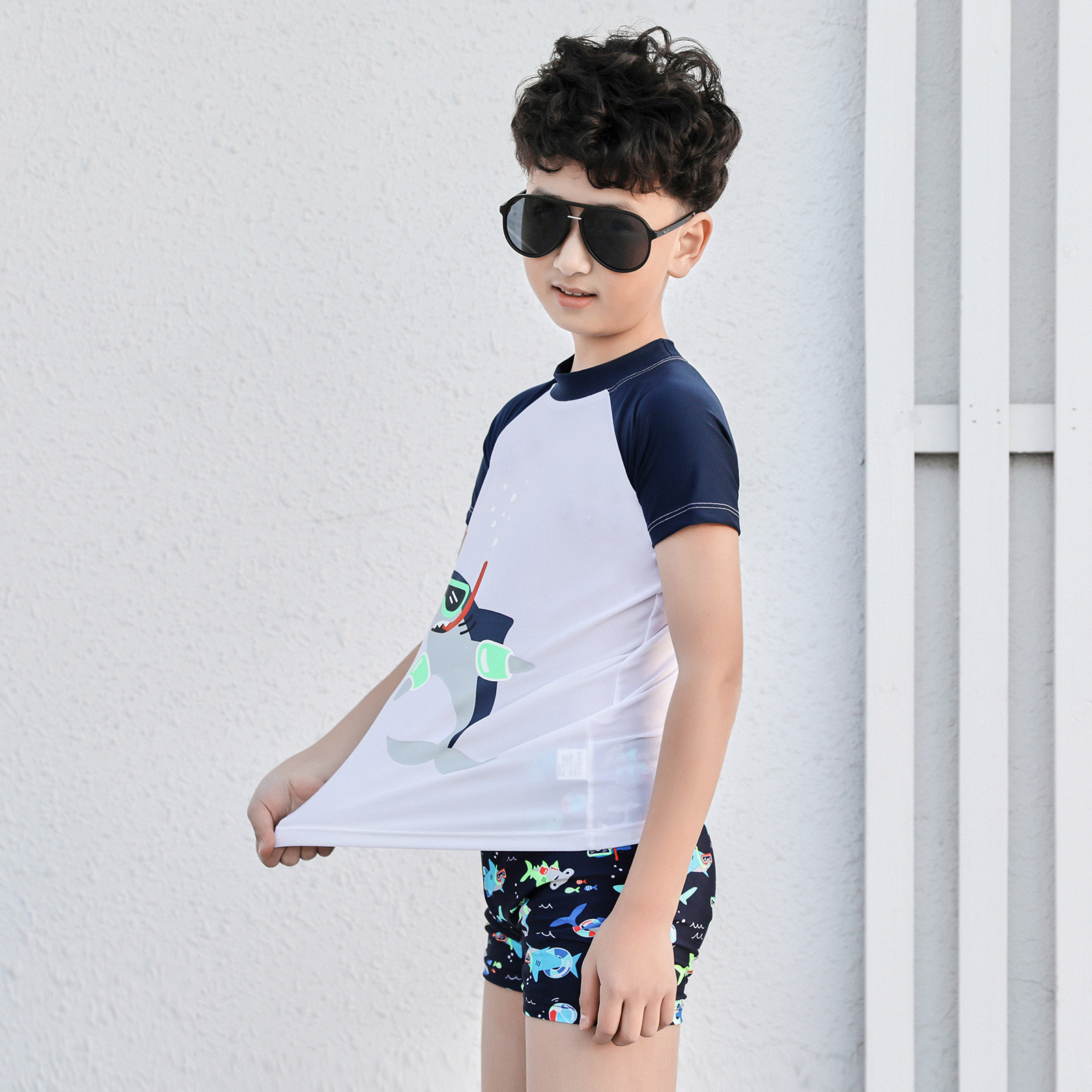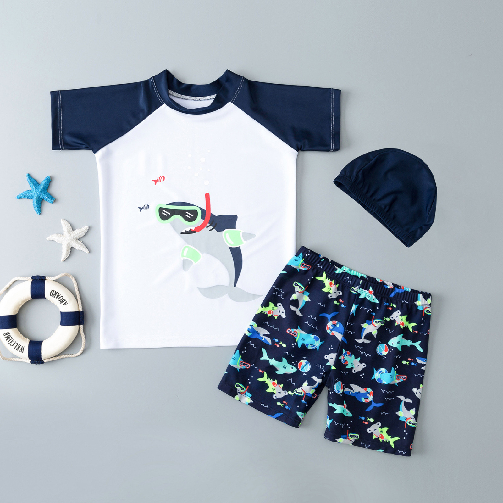 Купальный костюм из двух предметов с рисунком акулы для маленьких мальчиков; Пляжный купальный костюм