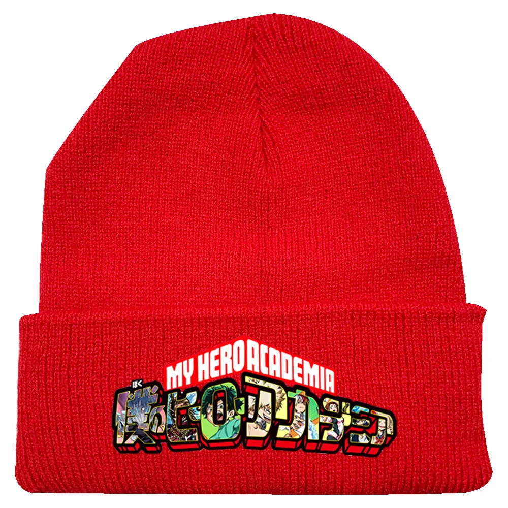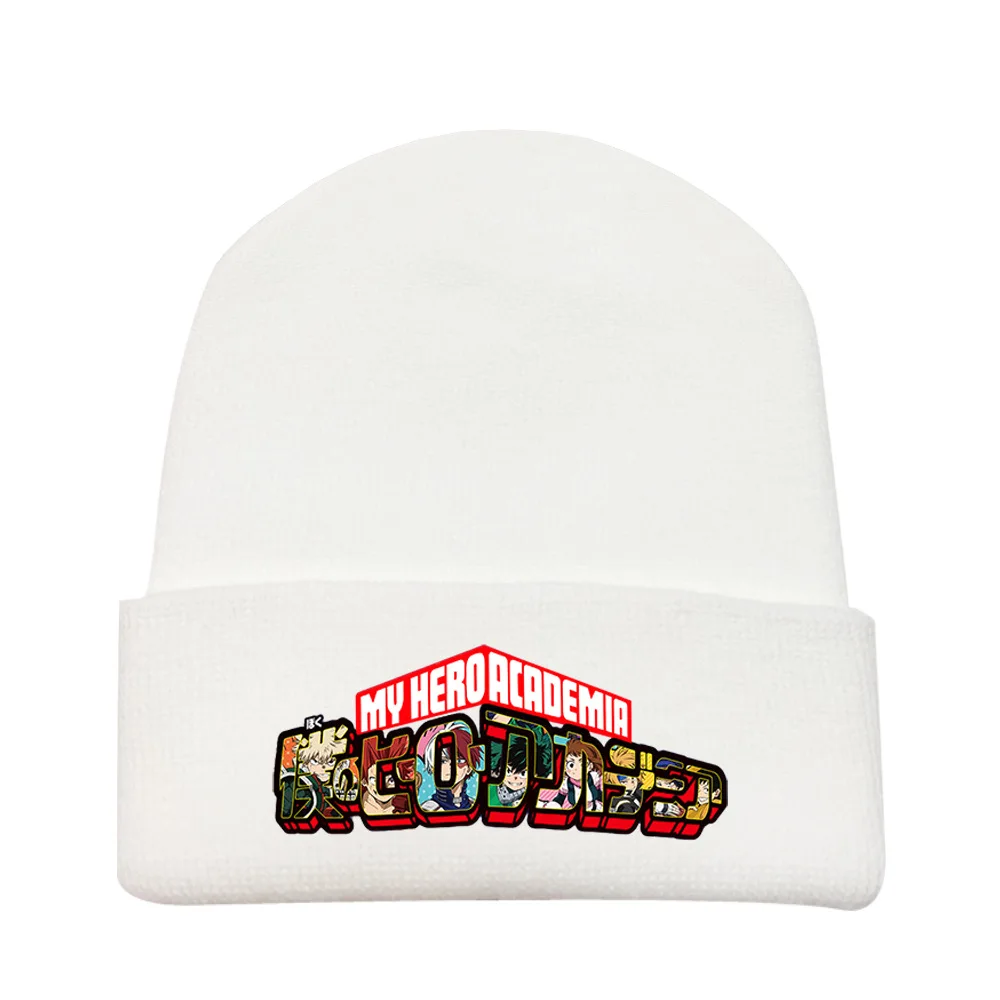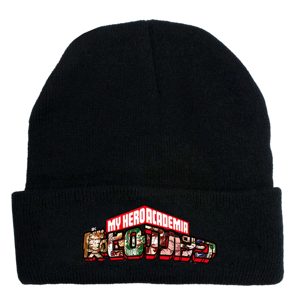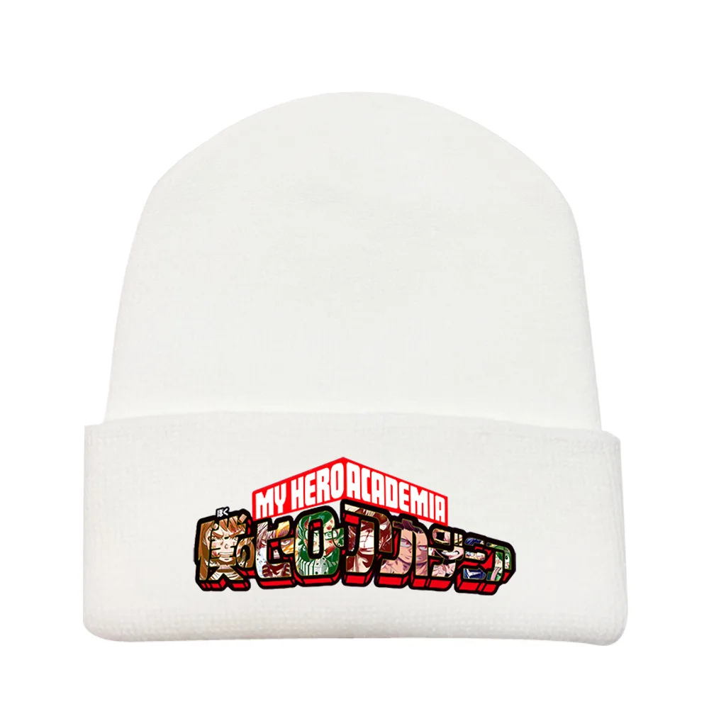 Повседневная теплая шапка My Hero Academia черная белая с принтом персонажа MHA вязаная