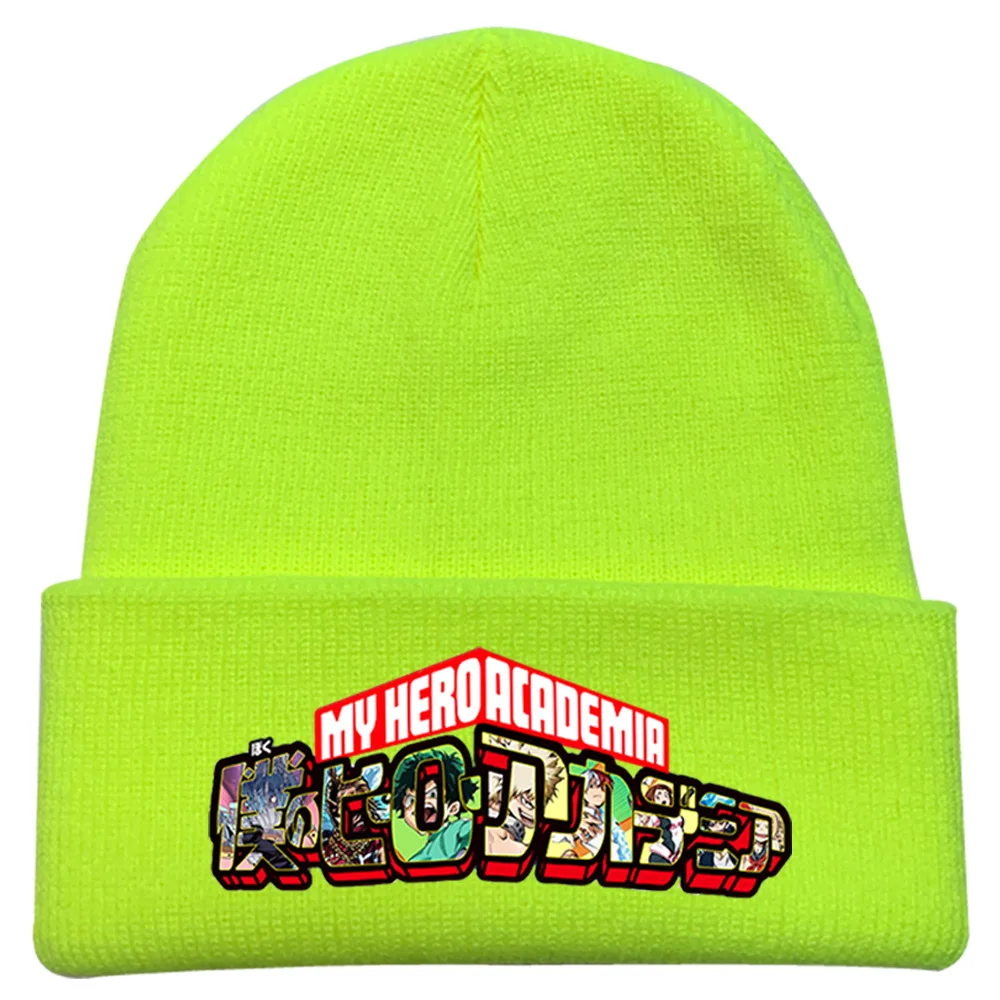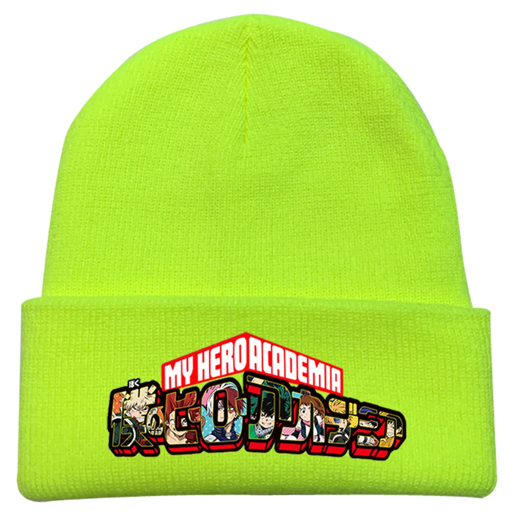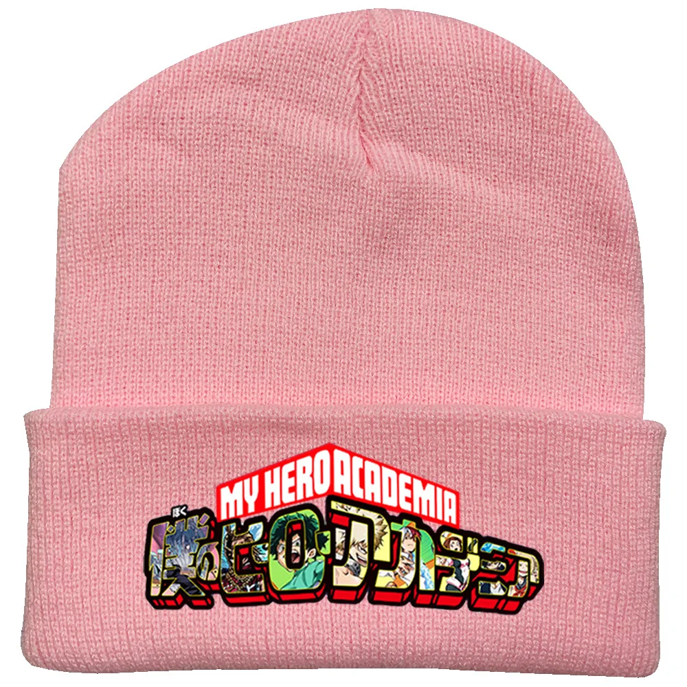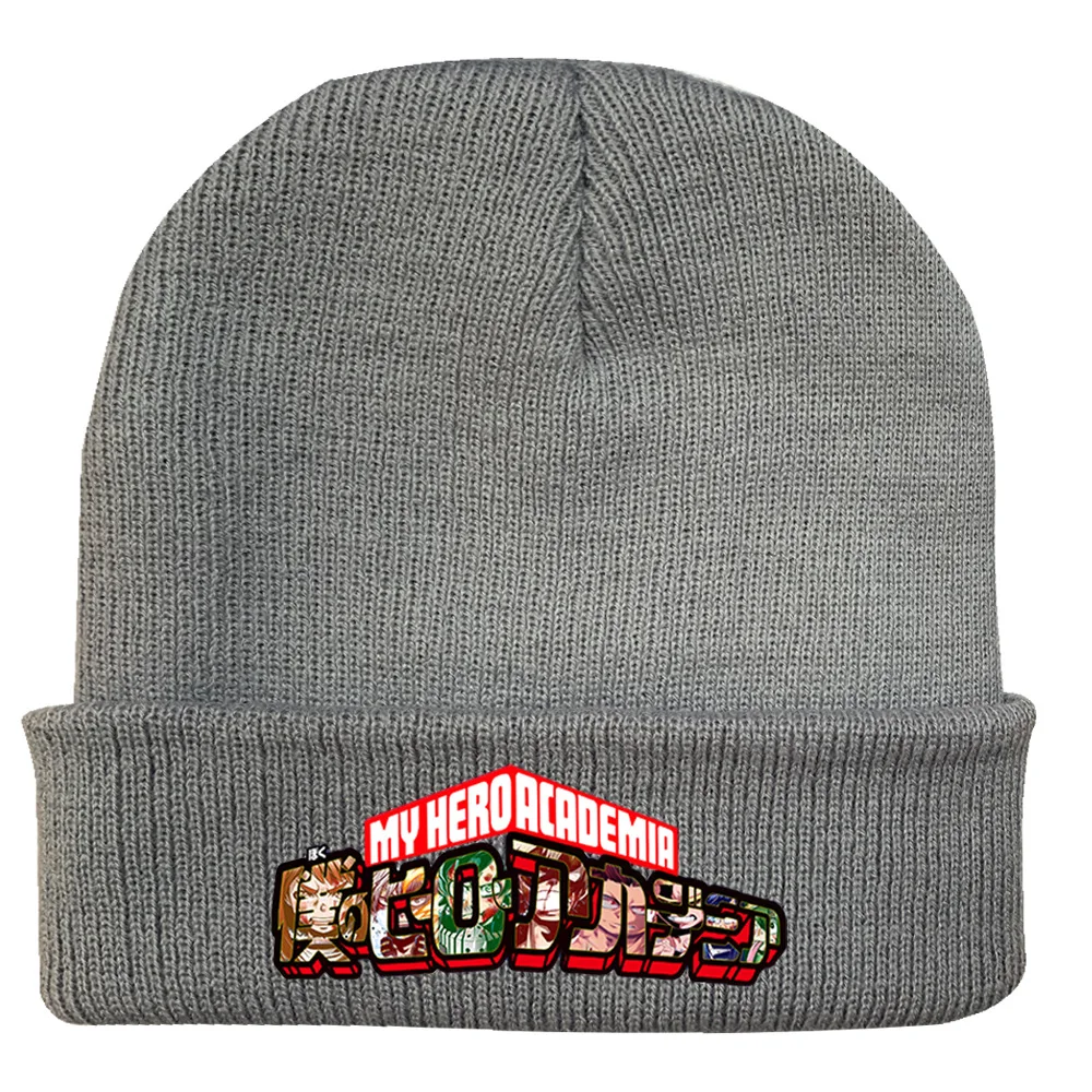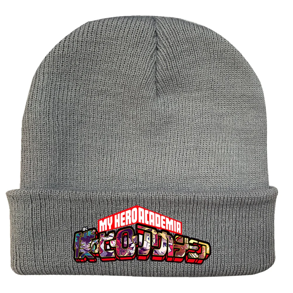 Повседневная теплая шапка My Hero Academia черная белая с принтом персонажа MHA вязаная