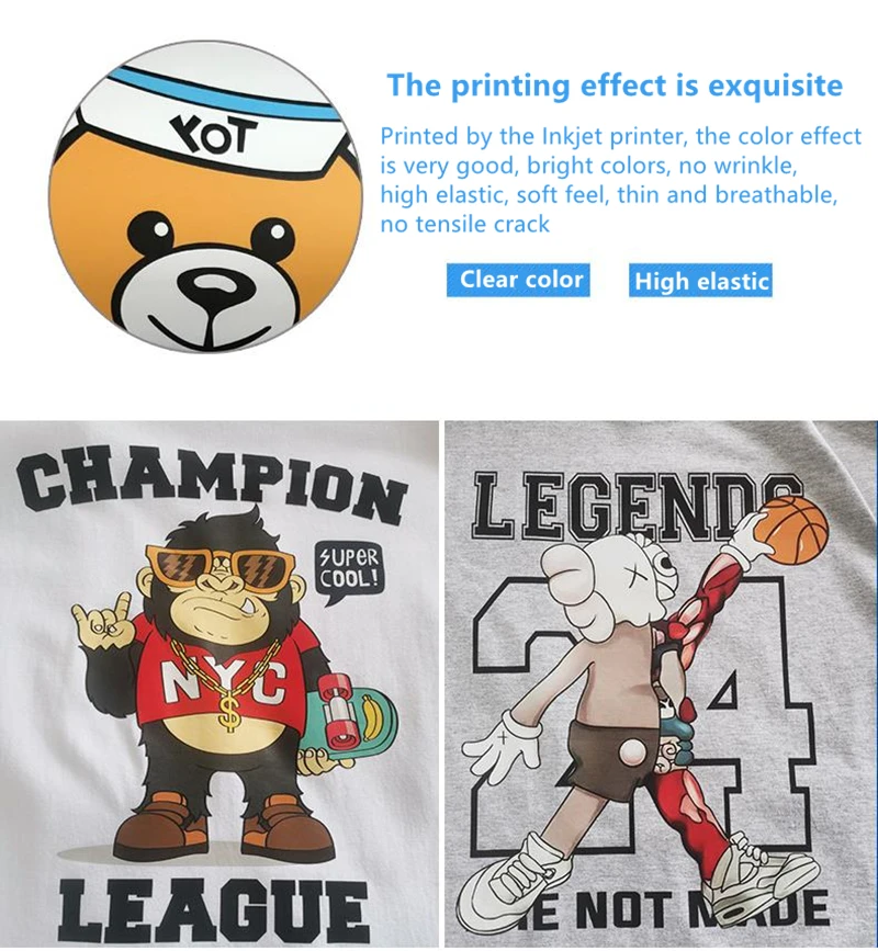 Напечатанный струйным принтером, эффект цвета очень хороший, яркие цвета, без морщин, высокая эластичность, мягкая на ощупь, тонкая и дышащая, растягивающаяся трещина