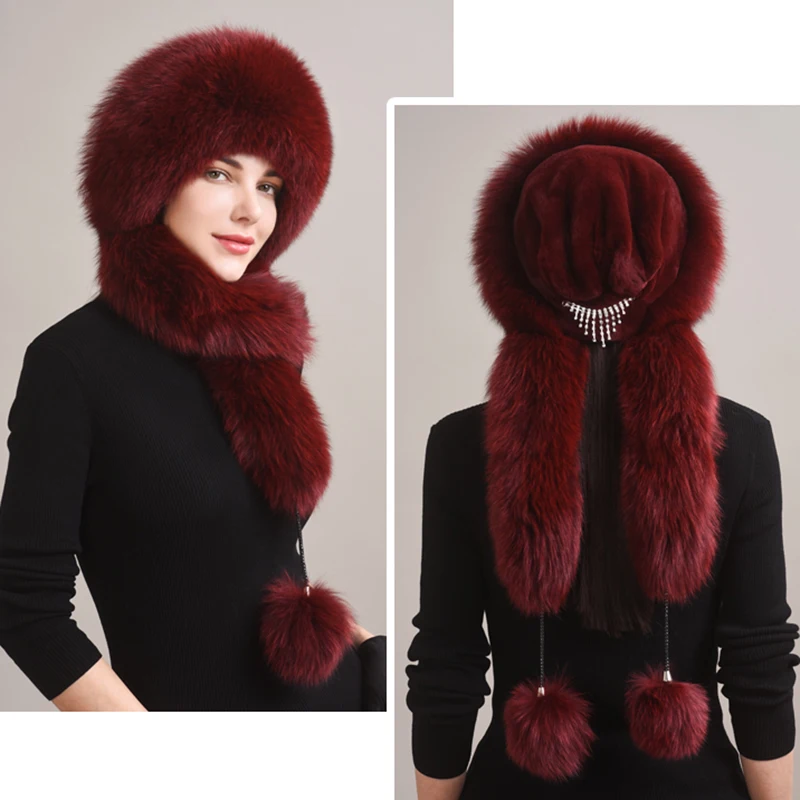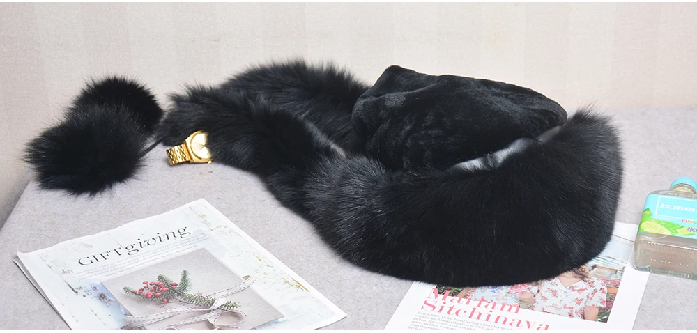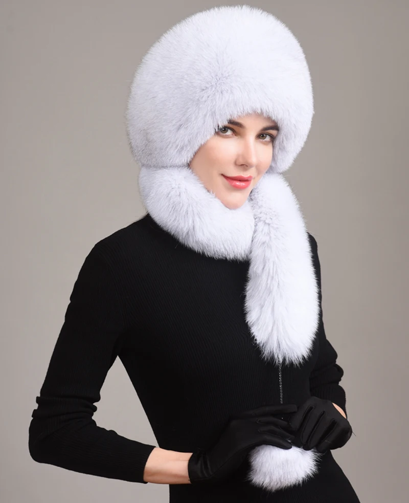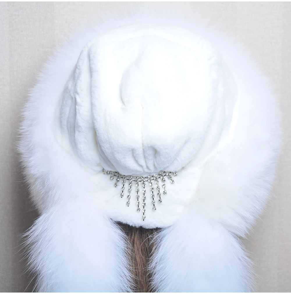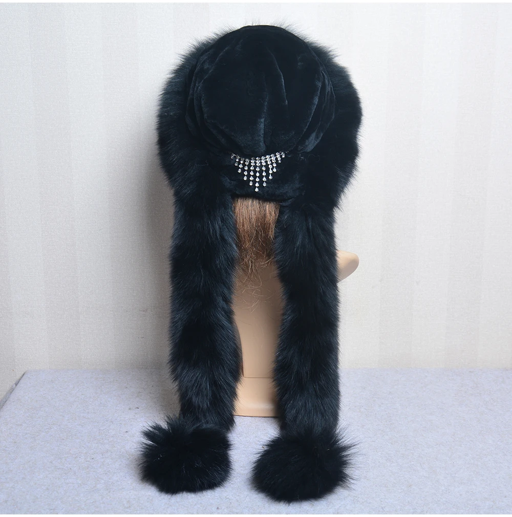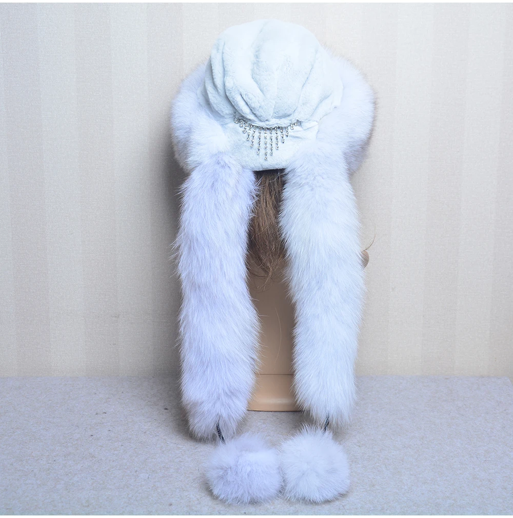 Роскошная женская шапка-бомбер из натурального Лисьего меха, Русская женская зимняя Толстая теплая шапка из натурального Лисьего меха, роскошная Дамская меховая шапка из меха кролика рекс