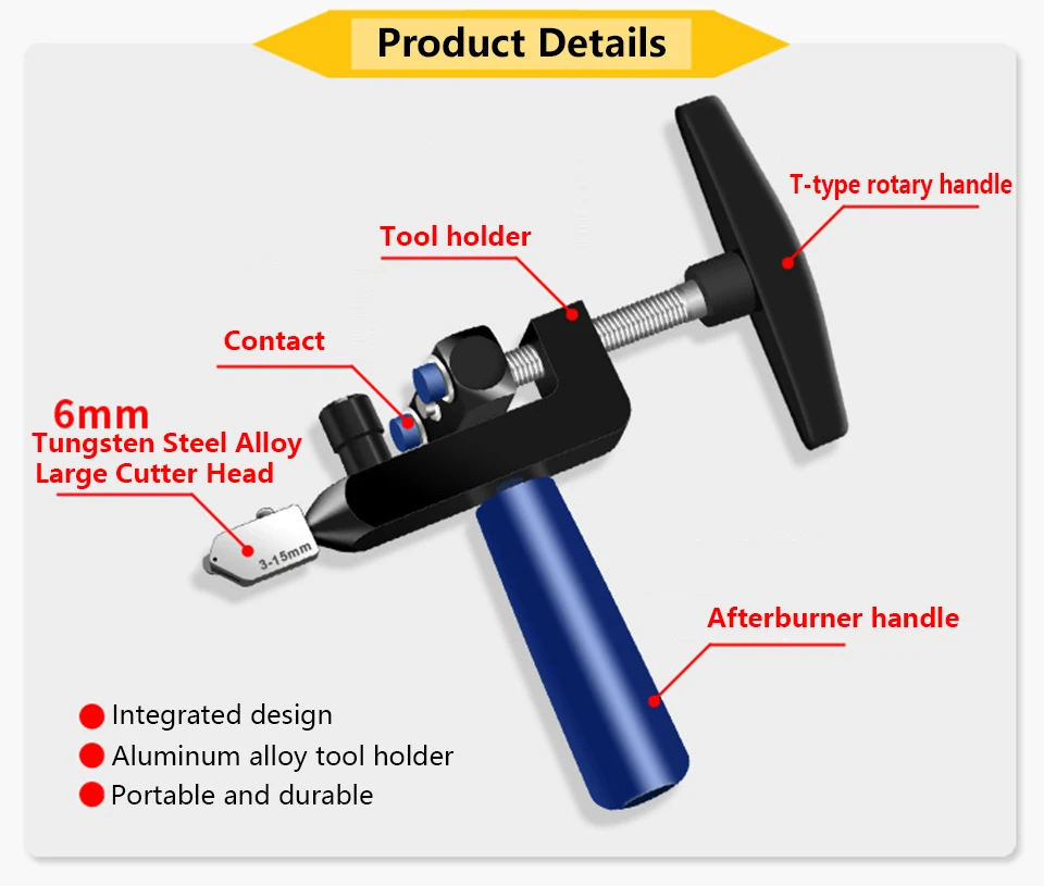 3. Большая конструкция режущего колеса: увеличение диапазона резания 6 мм диаметр твердого сплава режущего колеса: 3-15 мм, резкая резка.