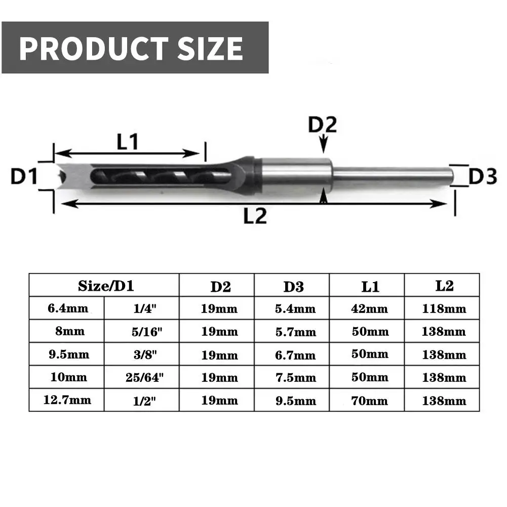 1. Эта долото отлично подходит для бурения квадратных отверстий в дереве с помощью Mortising машины или mortising приложения.