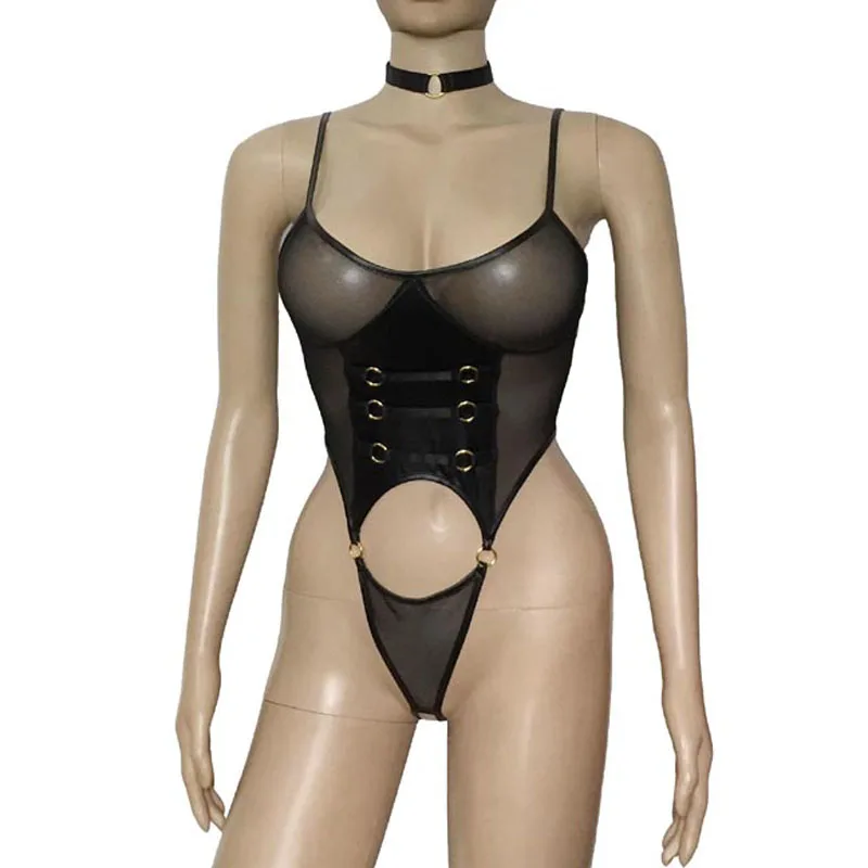 Материал: тонкая без косточек искусственная кожа с сеткой. Металлическое кольцо, украшенное как спереди, так и сзади. Область груди с прозрачной сеткой Бюст. Ремешок в стиле jock без косточек, прикрепленный к корсету. Идеально подходит для ролевых игр или Фетиш-игр Как нижнее белье для вашего любимого. Застежка на шнуровке сзади. Размер один размер подходит для груди 80-100 см, талия 60-90 см. Рост в пределах 175 см. В комплект входит один корсет с шейным кольцом.