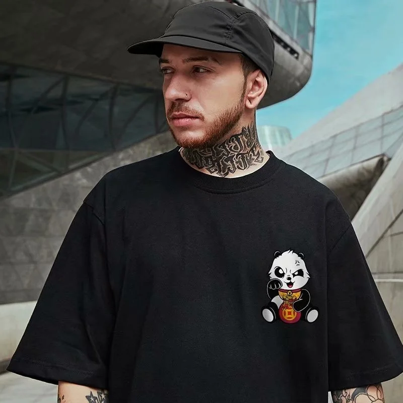 Новинка 2022 летняя модная Мужская хлопковая футболка с коротким рукавом большого размера, свободная футболка с принтом «Lucky Cat» с аниме, Мужская футболка большого размера плюс размера