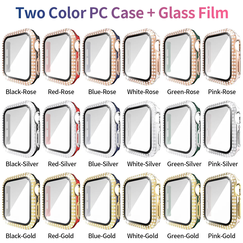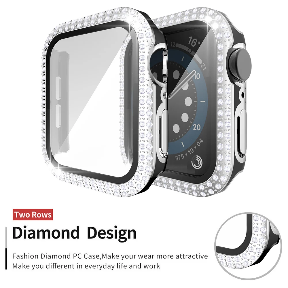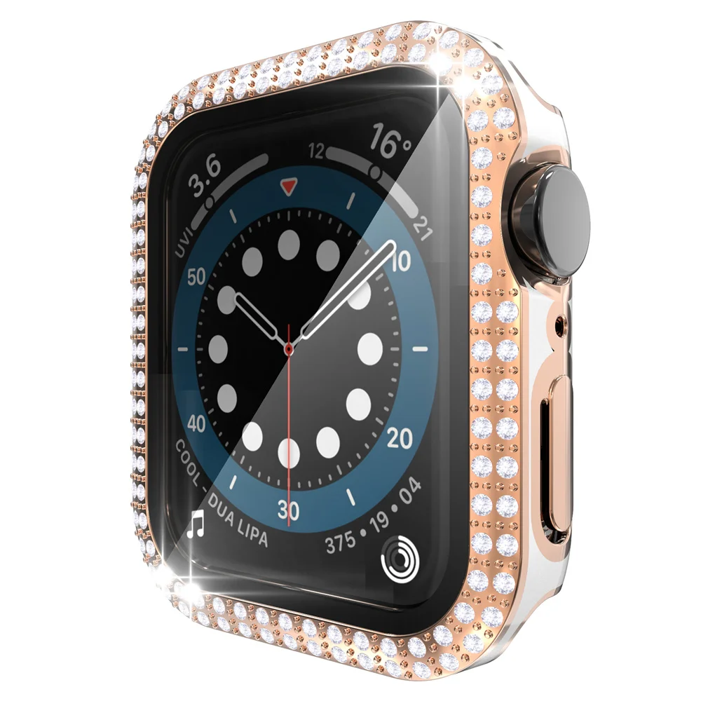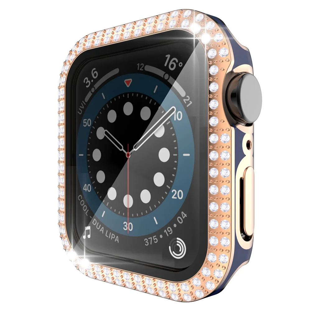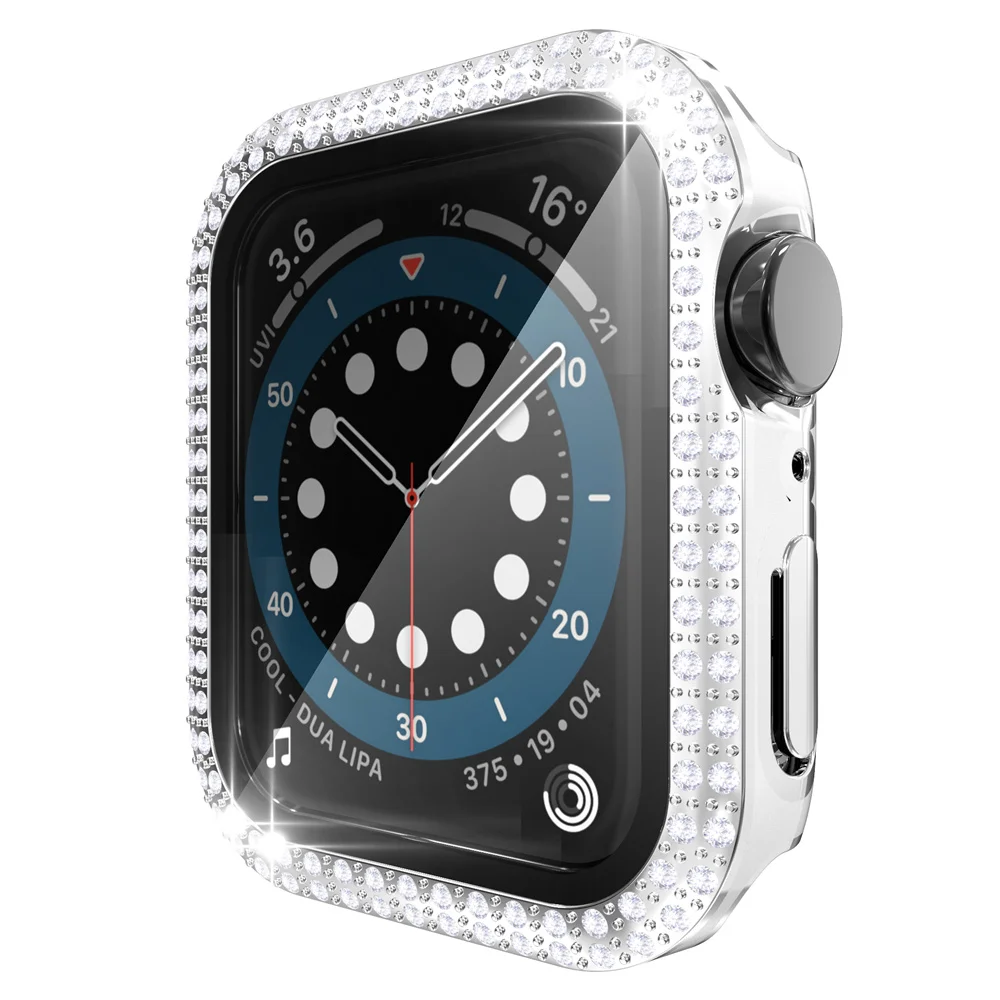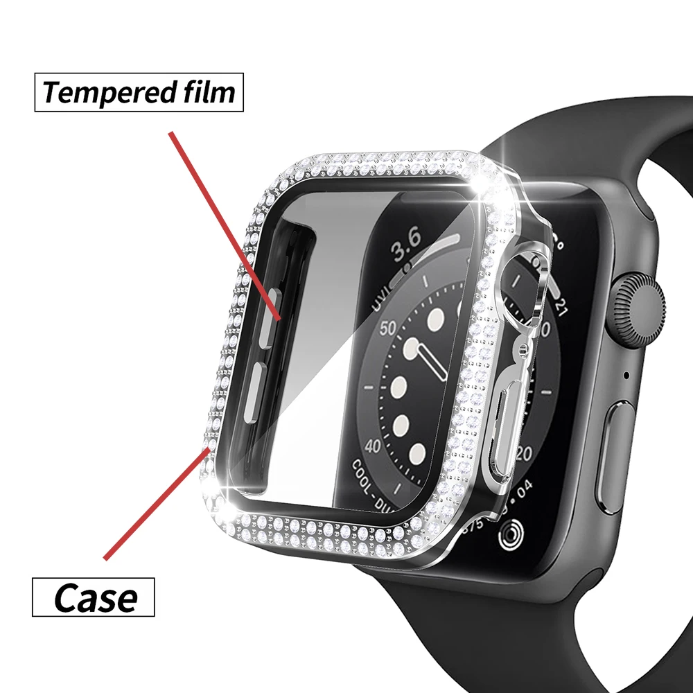 Защитная стеклянная пленка для экрана чехол для Apple Watch SE Series 6 5 4 3 чехол Алмазный PC Бампер для Iwatch 40 мм 44 мм 38 мм 42 мм корпус