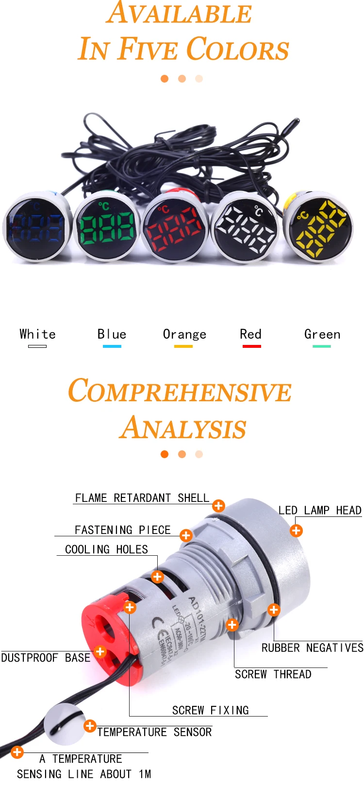 22 мм-20-199 градусов Цельсия защитная пленка светодиодный цифровой термометр