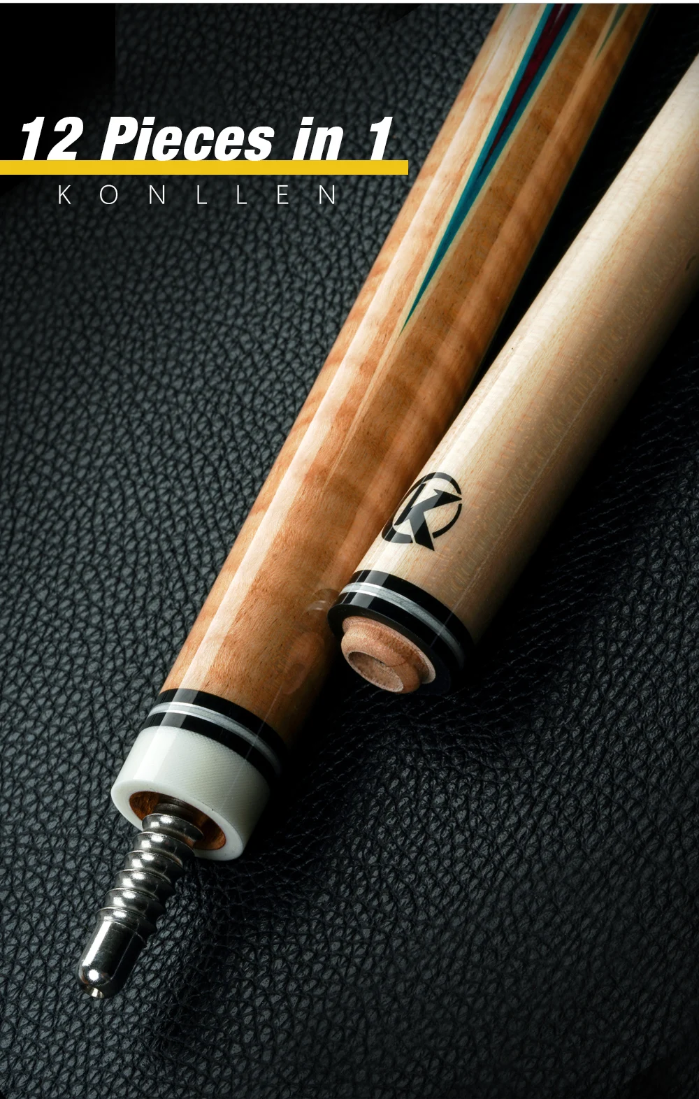 KONLLEN 3 подушки карамболь кий реальные инкрустация низкая отклонение палка Технология бильярдный кий (12 штук в пакете 1 вал, 142 см, 12-12,2 мм наконечник, радиальный, шарнирное соединение, регулируемый Вес, карамболь Профессиональный конус)