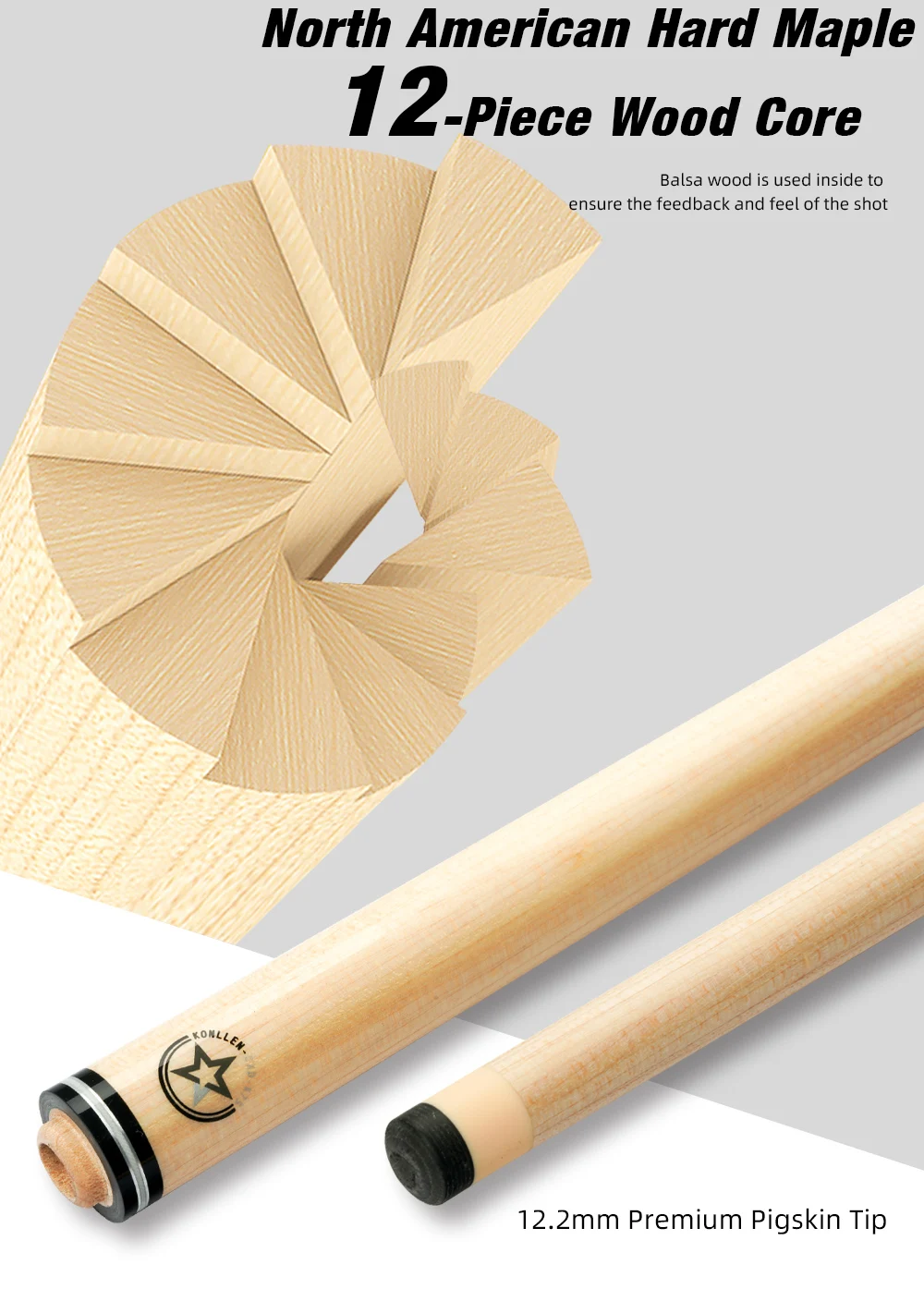 【Tip】KONLLEN высококачественный наконечник из свиной кожи специально разработан для игроков Carom. 12,2 см, что может привести к тому, что вам идеальный привлекательный эффект.
