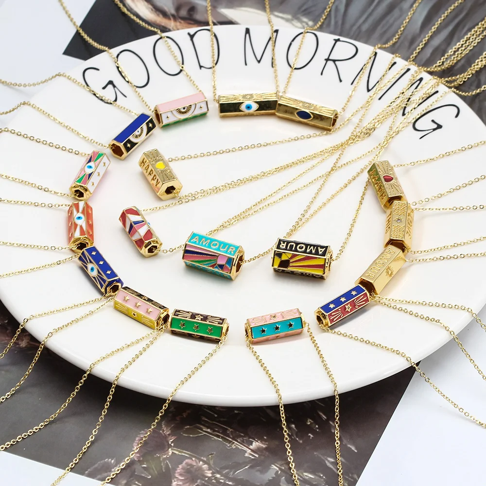 Wish Card, эмаль, медная подвеска, ожерелье для женщин, девушек, сглаза, 2021, модные праздничные ювелирные изделия, Женская цепочка на шею, чокер, одна штука