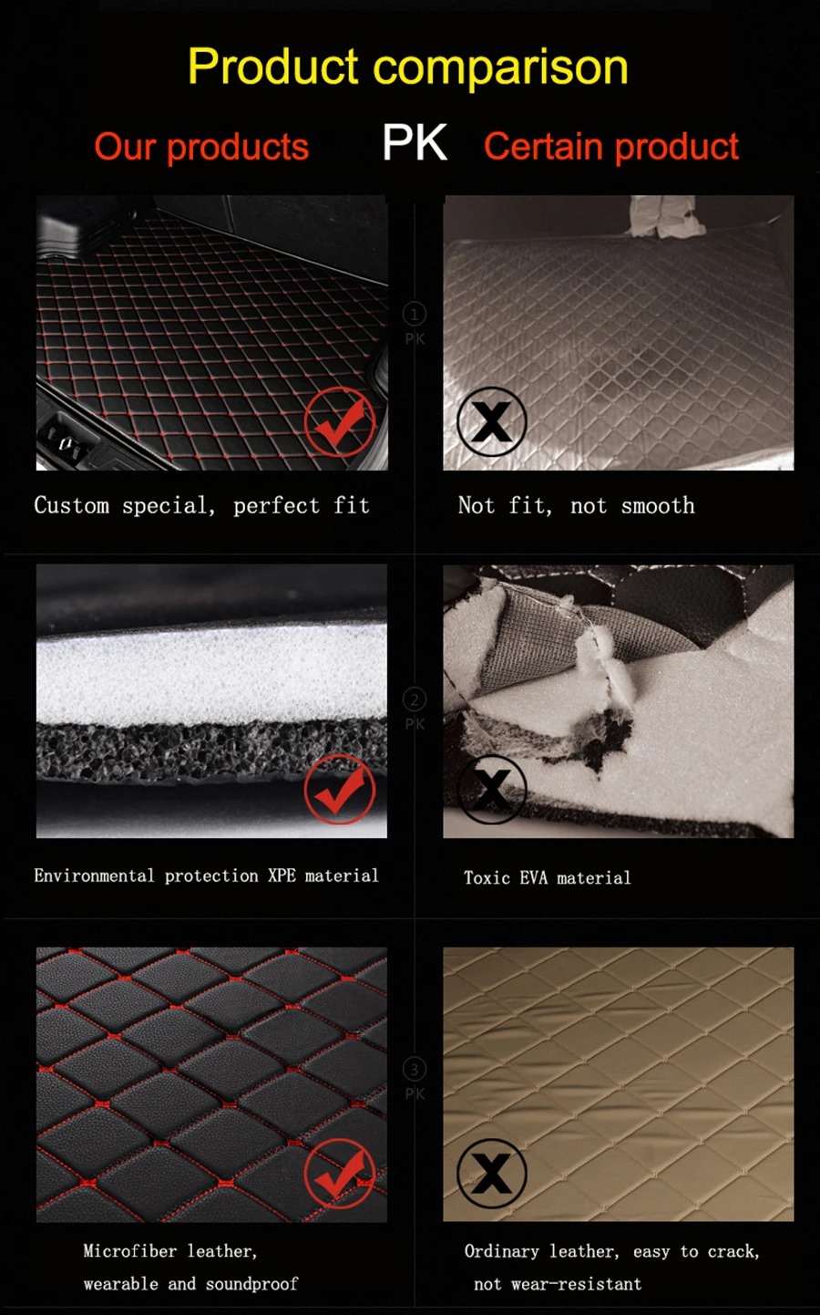 Здравствуйте, друг, добро пожаловать в мой магазин, мы специализируемся на производстве автомобильных ковриков для багажника, пожалуйста, свяжитесь со мной. Это специальный коврик для багажника автомобиля, который мы создадим для вашей модели автомобиля, и он идеально подходит для вашего автомобиля. При заказе, пожалуйста, оставьте сообщение и сообщите мне знак/модель/год вашего автомобиля. Например: Jaguar /xf/ 2014 лет. Мы сделаем его в соответствии с вашей моделью, спасибо!