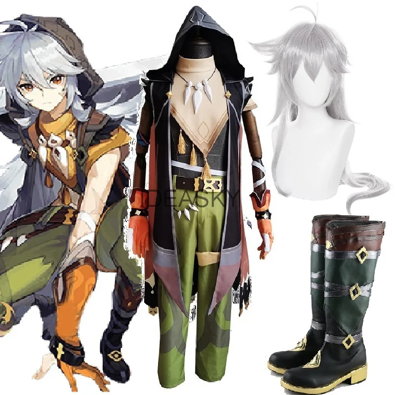 Genshin Impact Razor Leizei, игровой костюм, Униформа, легенда о беге, волчьем воротнике, карнавальный костюм, наряд на Хэллоуин, мужская обувь с париком, ботинки