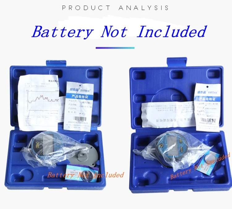 Точность: 0,01 мм/0,001 мм; Диапазон: 0 ~ 12,7 мм/25,4 мм; Руководство по эксплуатации на английском языке; Диаметр циферблата: 57 мм; Резьбы: M2.5; Установка Полюс Диаметр: 8 мм Мощность: 1 элемент CR2032 (батарея не входит в комплект)