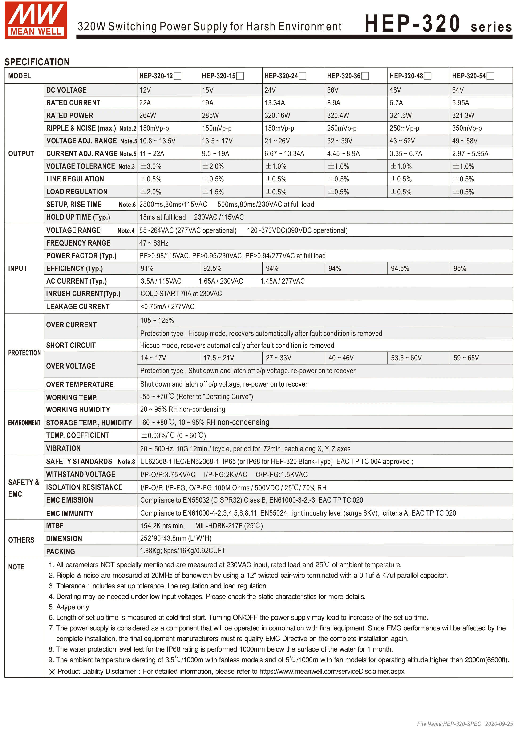 HB-320-это промышленный источник питания переменного/постоянного тока мощностью 320 Вт, обладающий исключительной возможностью работать в суровых условиях с высокой плотностью пыли, влажностью, вибрацией и высотой. Вся серия состоит из прочного алюминиевого чехла и полностью покрыта термопроводным силиконом. Благодаря новейшему дизайну эффективность работы достигает 95%, что позволяет гепат-320 с безвентиляторным дизайном, отлично работают от-55 °C до + 70 ℃ при свободной воздушной конвекции.