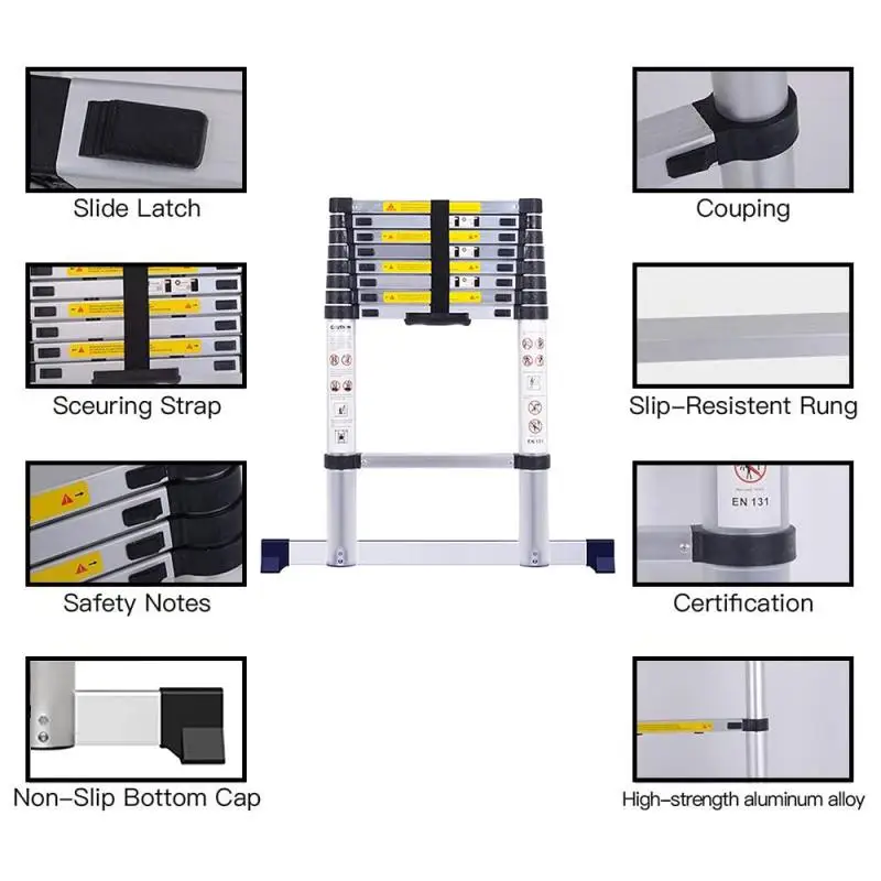 2,6 м, портативная телескопическая алюминиевая лестница лента Сумка поперечная планка Перчатки (9 шагов)