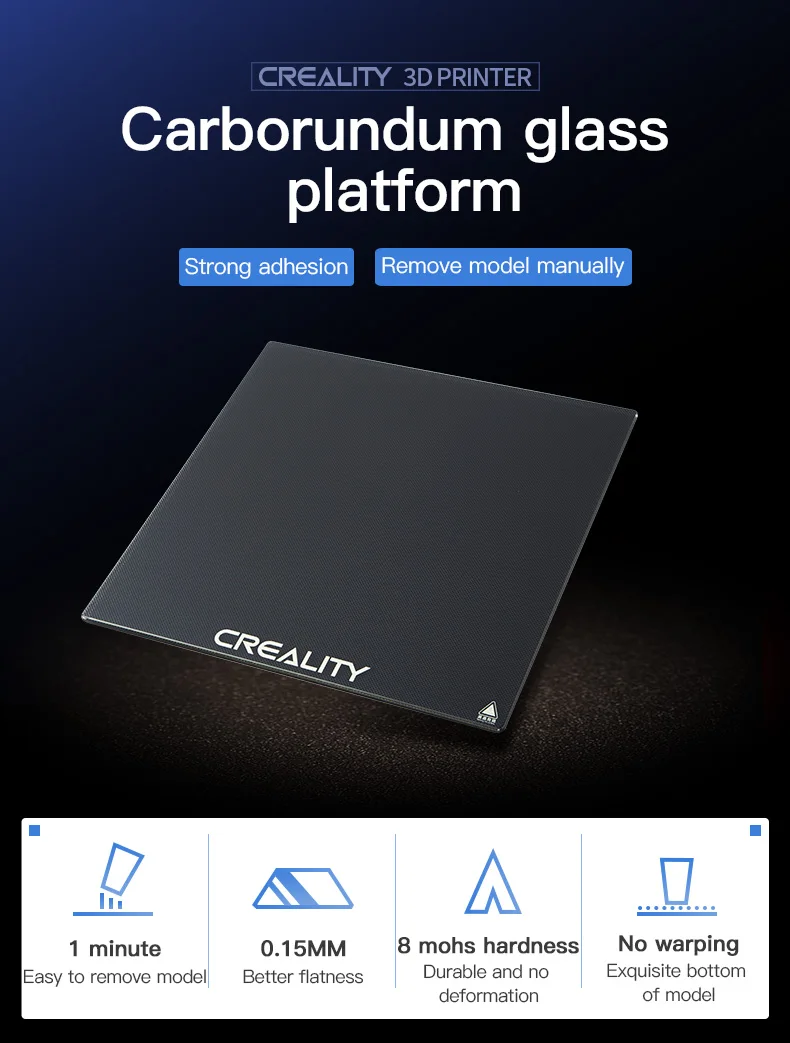 Отличная Адгезия: Creality art carbon и silicone build surface обеспечивают наилучшую адгезию на рынке. После того, как очаг остынет до комнатной температуры, углеродно-Силиконовое основание выпустит модель, которая может быть легко удалена вручную.