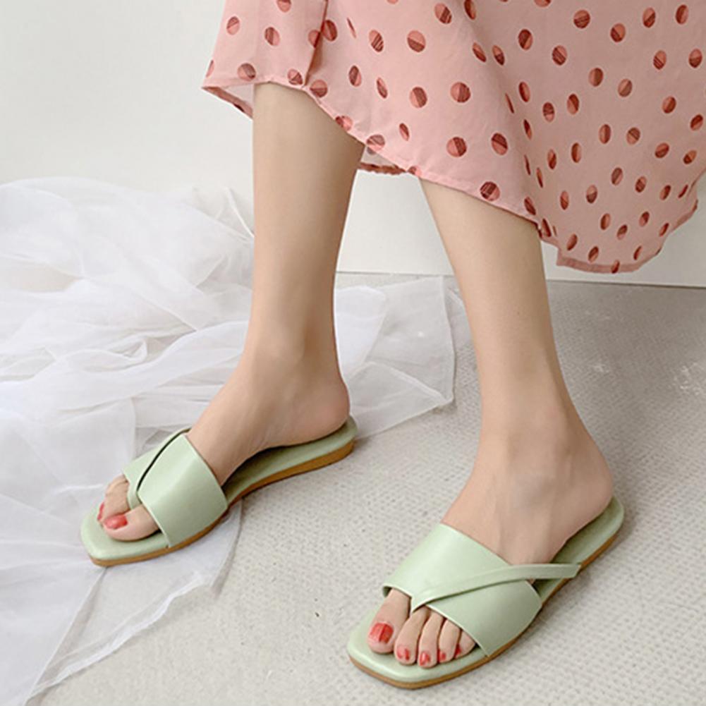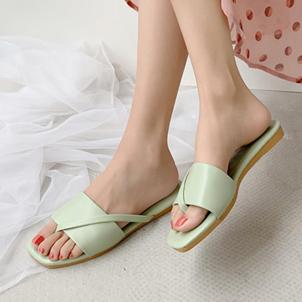 Женские сандалии на плоской подошве с открытым носком; Летние Нескользящие пляжные тапочки на мягкой подошве