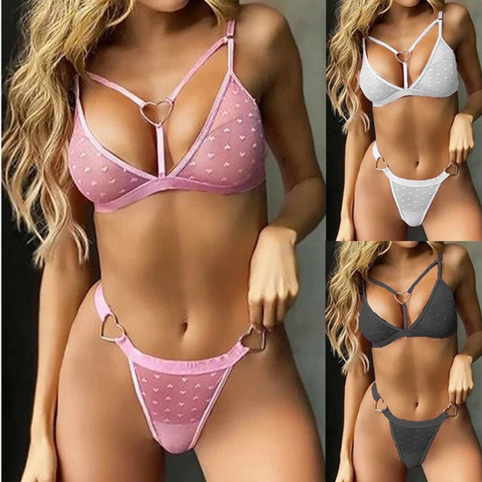 Женское кружевное сексуальное нижнее белье с принтом «любовь», бюстгальтер + стринги, пижамный комплект нижнего белья