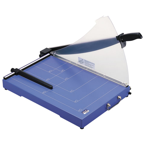 Сабельный резак A3 предназначен для резки до 20 бумажных листов. Защитный экран предотвращает вероятность прикосновения пользователя к ножу резака во время работы. Прочное металлическое основание.