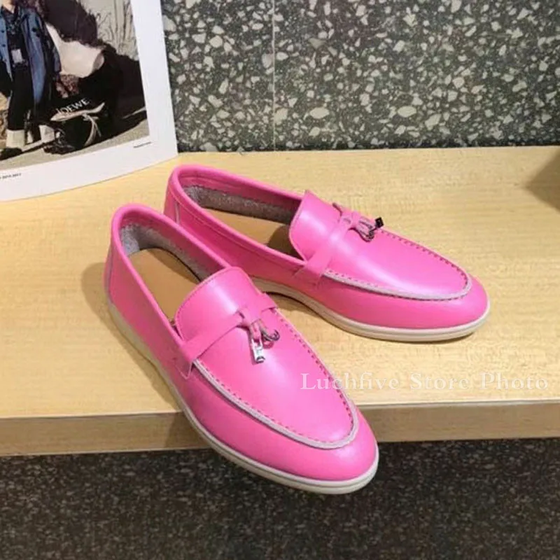 Лидер продаж; Лоферы на плоской подошве; Женские разноцветные кисти; Дизайнерская повседневная обувь с подвеской; Кожаная обувь для вождения без шнуровки с круглым носком; Mujer