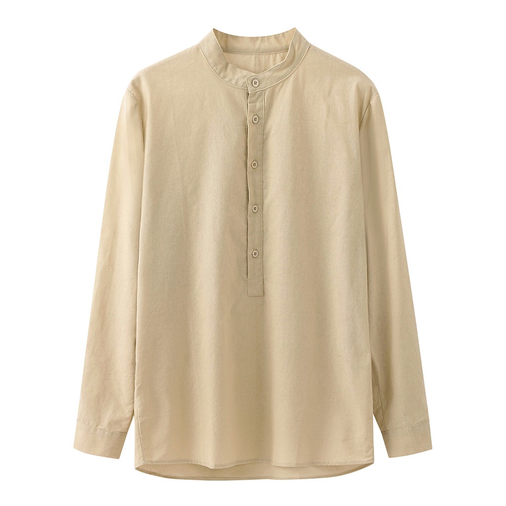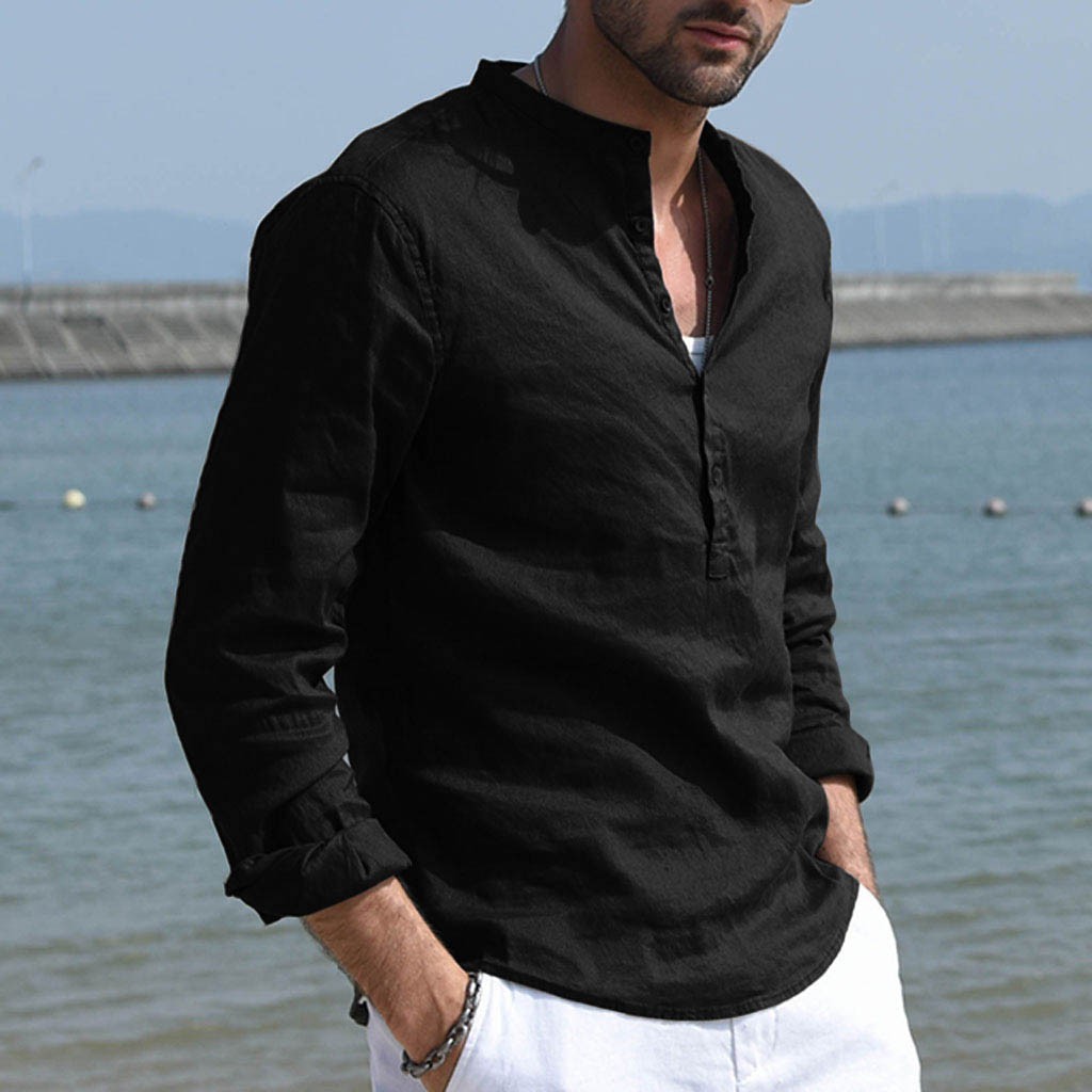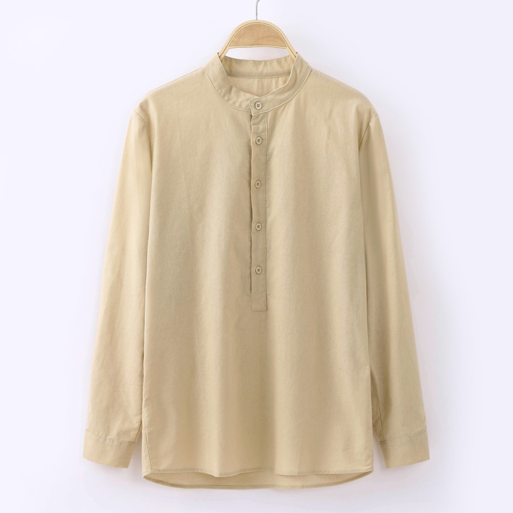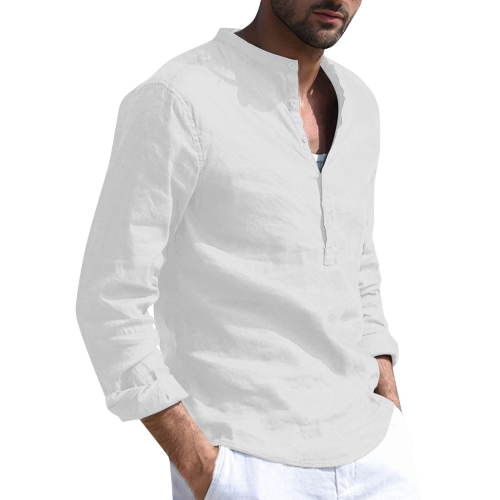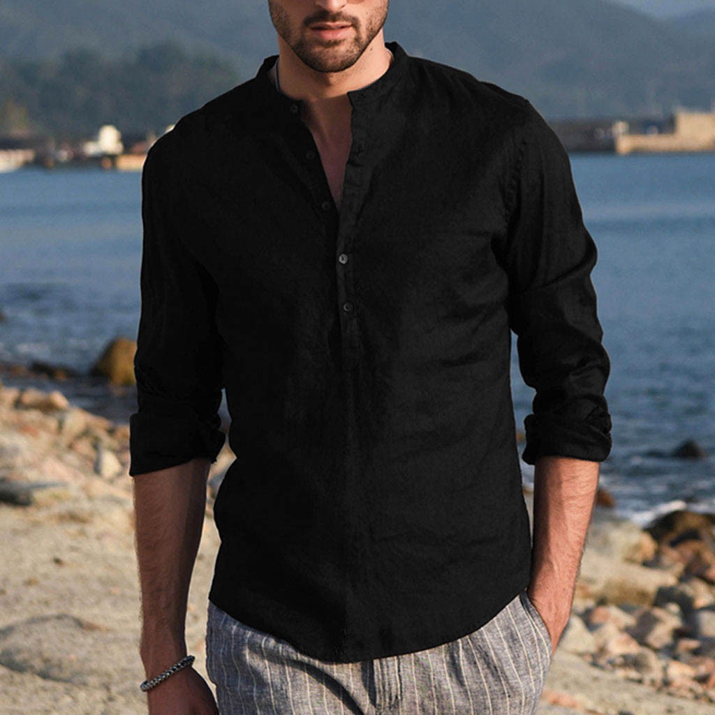 Мужские Мешковатые хлопковые льняные однотонные футболки с длинными рукавами и пуговицами в стиле ретро топы блузки