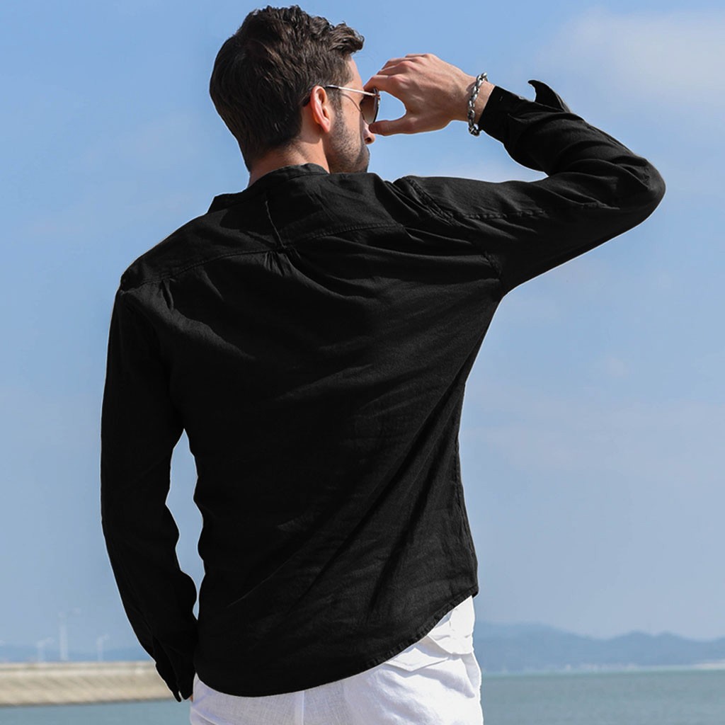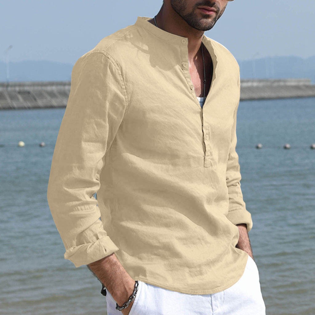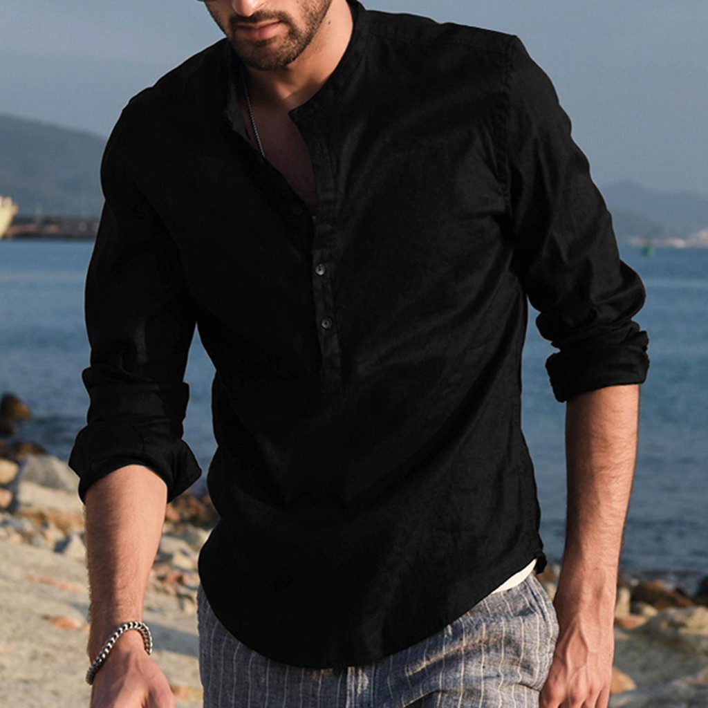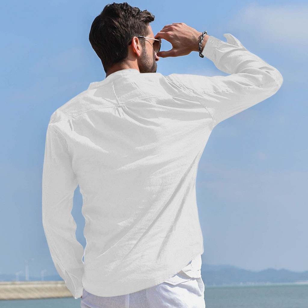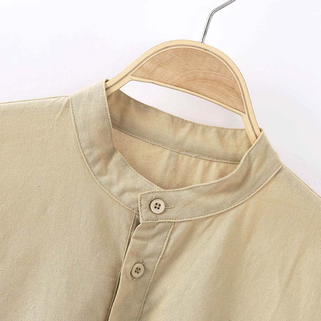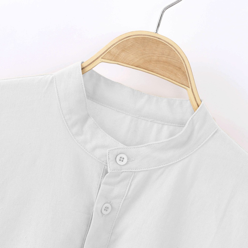 Мужские Мешковатые хлопковые льняные однотонные футболки с длинными рукавами и пуговицами в стиле ретро топы блузки