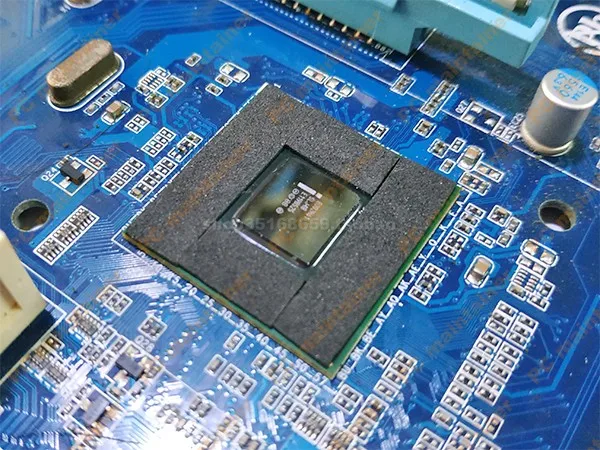 Перед установкой радиатора Очистите поверхность чипа и опорную пластину вокруг него. Нарежьте прикрепленную губку на мелкие полоски и вставьте вокруг сердечника круг защитного буферного слоя (как показано на рис. 2 ниже). Этот шаг должен быть сделан, потому что в радиаторе есть только два отверстия, которые могут привести к дисбалансу. Защитный слой буфера может использоваться в качестве поддержки для предотвращения измельчения ядра.![]()