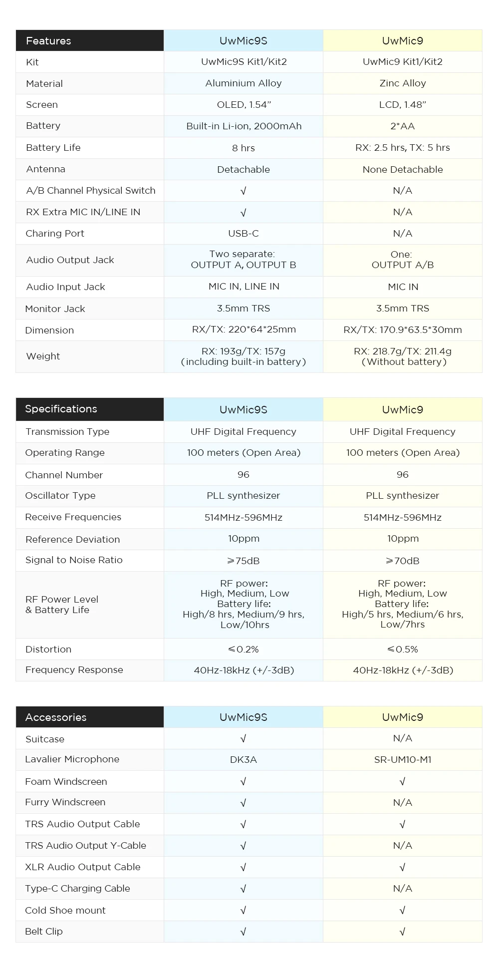 Беспроводная микрофонная система Saramonic UwMic9S обеспечивает высококачественное беспроводное аудио-решение для 2 человек для трансляции и ТВ. ENG filmmakers, vloggers, мобильные журналисты и создатели контента замечательная цена. Это простая в использовании, высококачественная и Гибкая UHF-система. Внешний вход позволяет приёмнику подключаться к микрофону или устройству линейного уровня, например к микрофону дробовика, миксеру, диктофону или музыкальному проигрывателю, чтобы запечатлеть дополнительный звук или музыку. Система может питаться через USB-C порты, что позволяет ей работать в течение многих часов на USB-C 5V power bank.