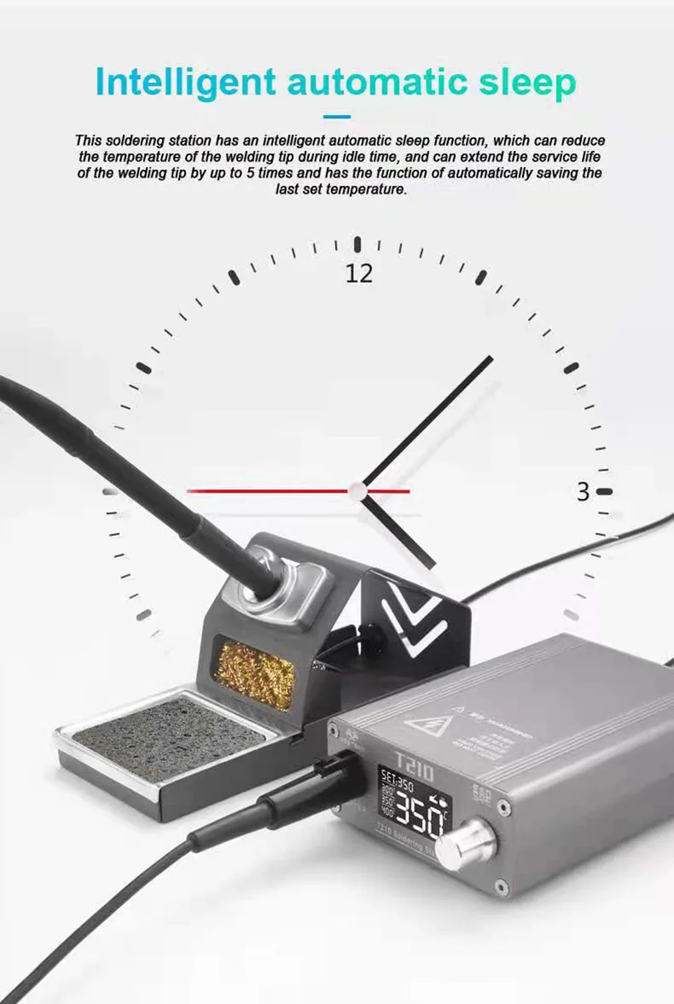 2. Данная паяльная станция имеется функция автоматического сна, которые могут снижения температуры сварочного наконечника во время простоя инструмента, что может продлить срок службы сварочный наконечник с погрешностью в пределах 5 раз, И автоматическое сохранение последнего заданной температуры.