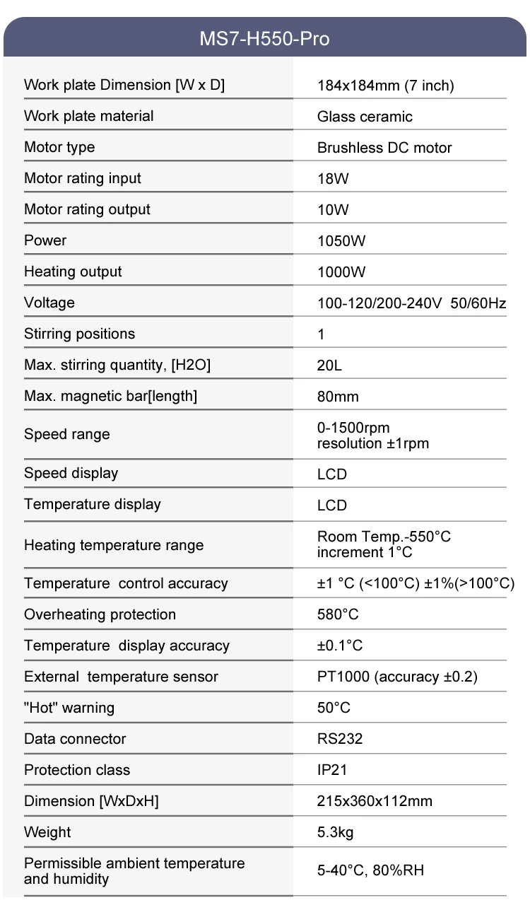 Макс. Температура нагревательной пластины 550 °C.