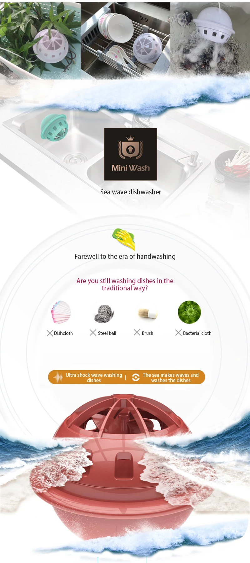 Акустическая энергия, передаваемая кавитацией супер-ударных волн в жидкости, производя бесчисленное множество детонированных микронных пузырьков. Пузырьки резко разрушаются, образуя ударные волны, которые постоянно воздействуют на поверхности и зазоры посуды и способствуют растрескиванию, эмульгированию и удалению стойкой грязи для достижения чистоты.