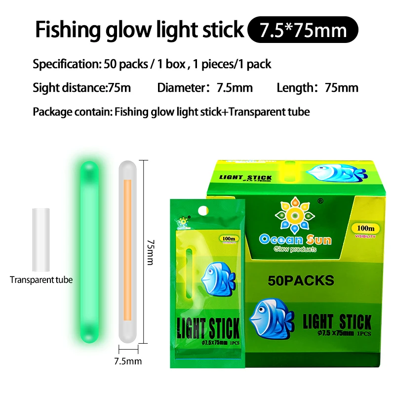 50 упаковок/коробка, светящийся светильник для рыбалки, высокое качество, флуоресцентный поплавок для рыбалки, долговечная зеленая светящаяся палка, рыболовные снасти