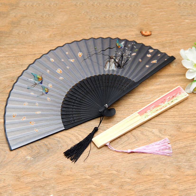 2021 бамбуковый античный складной веер Шелковый цветок ручной вентилятор китайские портативные Персонализированные Свадебные фанаты японский подарок подружки невесты