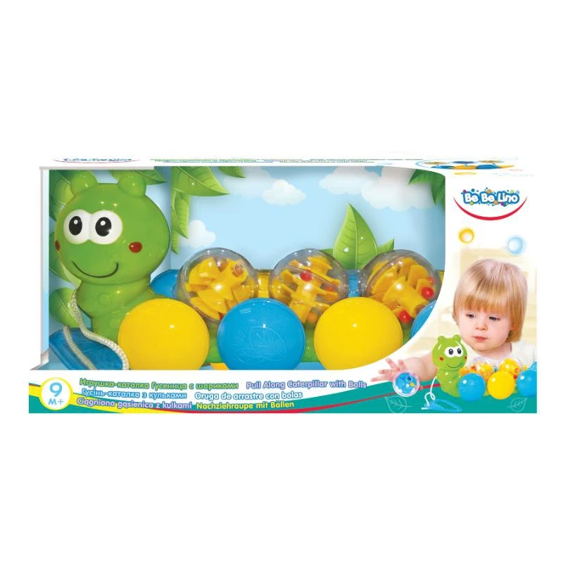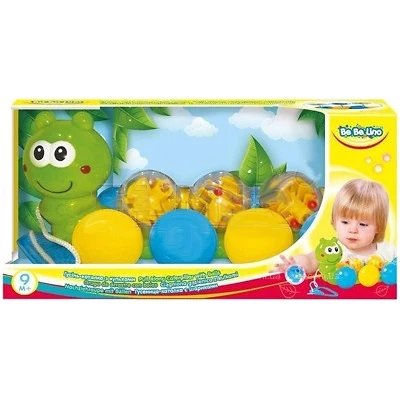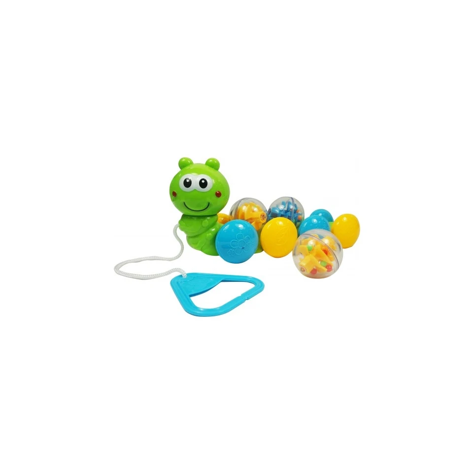 A cheerful toy-wheelchair with three balls-rattles. If you put the balls on the back of the Caterpillar and roll it, the balls will start to rotate, producing a sound characteristic of the rattle. Balls can be removed and played separately from the caterpillar. The head of the wheelchair turns 180 °, while a pleasant click is given. Equipment: Wheelchair-Caterpillar with rope and handle, 3 balls-rattles toy size: Caterpillar-23 × 11 cm; balls-4.5 cm.
