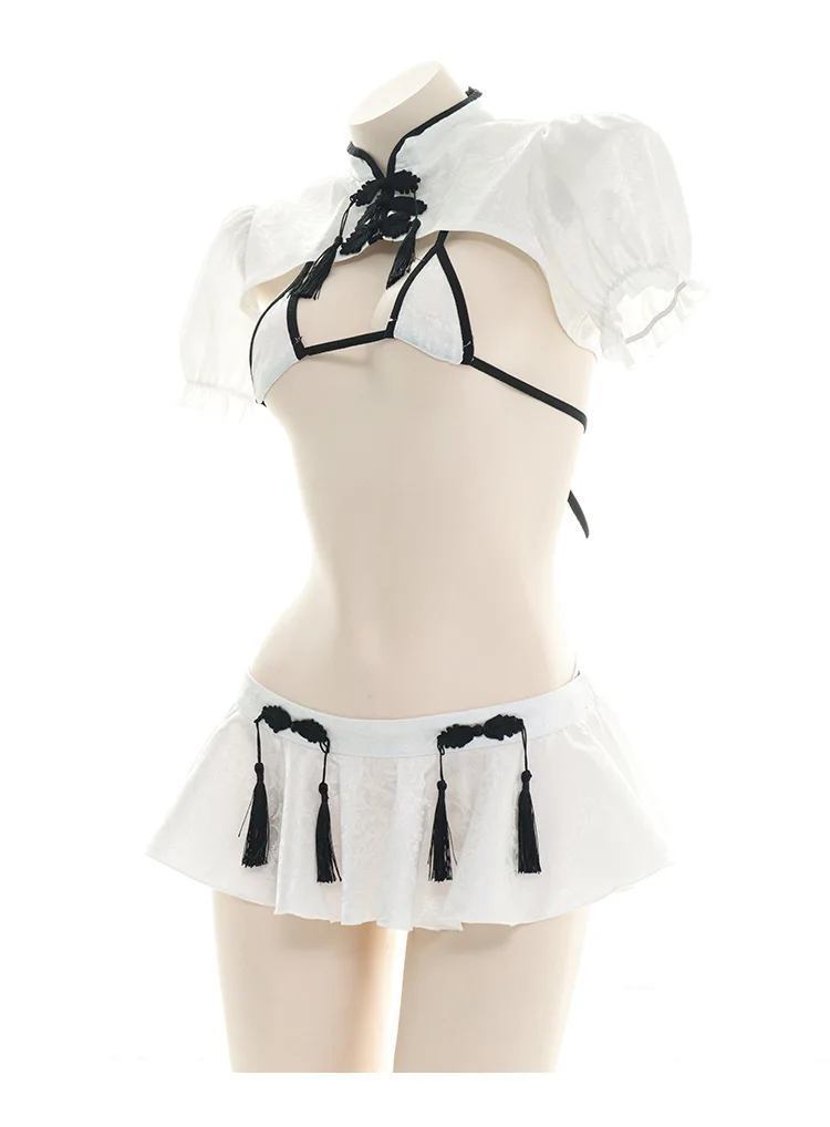 Винтажный китайский женский открытый грудь Чонсам с высоким разрезом кисточка набор белья бикини сексуальный костюм Лолита Ночная рубашка Косплей