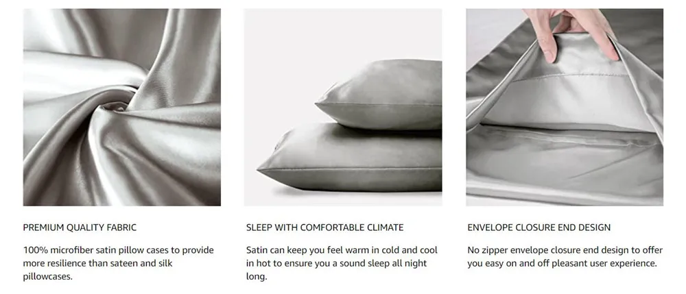 Compared with silk pillowcase, satin fabric is more durable. Our satin pillow cases are high quality and extravagant, which are luxury at an affordable price.