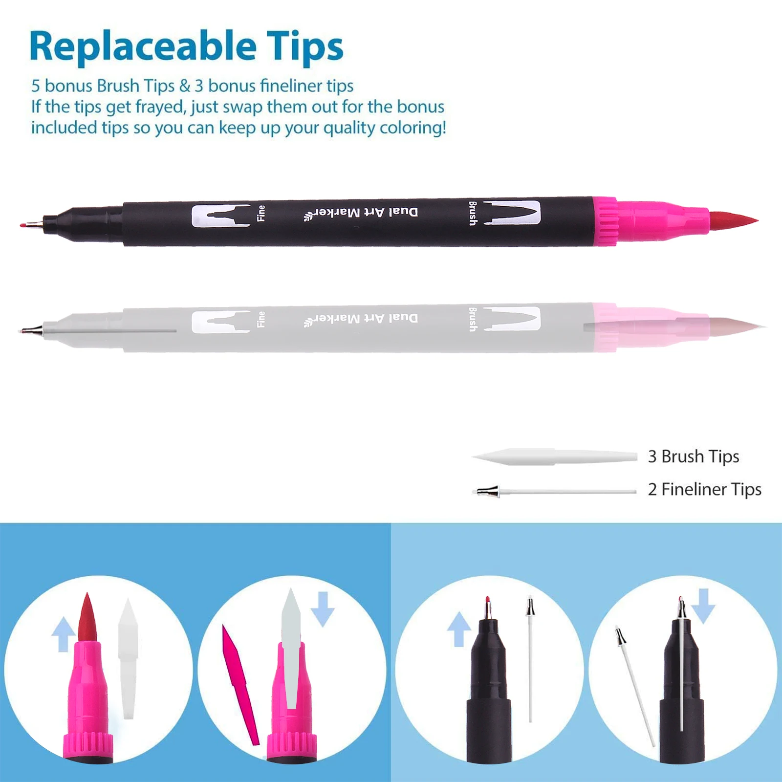 2 различных советы на выбор, и может использовать неограниченный и широкий спектр стилей окраски! 0,4 мм тонкий наконечник очень подходит для эскиза контуры и детали; 1-4 года мм Мягкая головка щетки для тени и быстрая окраска в больших площадей художественных проектов. Двойной подсказка, двойное удовольствие!