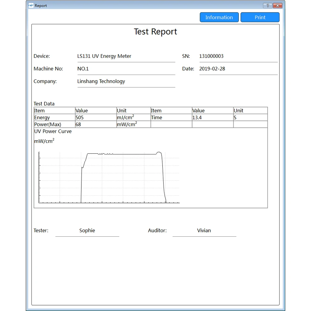 2. УФ измеритель энергии LS131 имеет схему кривой мощности, которая может анализировать светильник распределения интенсивности источника УФ-светильник через диаграмму кривой мощности.