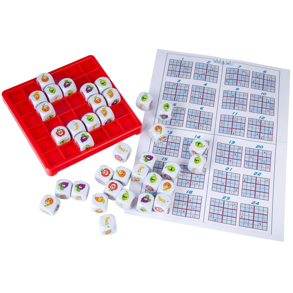 Участники раскладывают на игровом поле кубики с фруктами в соответствии с выбранным уровнем сложности (варианты последовательностей см. в инструкции). Игроку необходимо заполнить свободные ячейки кубиками с изображением фруктов таким образом, чтобы в каждой строке, в каждом столбце и в каждом малом квадрате не повторялся один и тот же фрукт. Т.е. нельзя ставить кубики с одинаковым изображением в одну и ту же колонку или ряд (вертикально или горизонтально). Когда будут заполнены все клетки, игрок может проверить правильность выполнения задания в инструкции, где находятся ответы к заданиям. Игра на логику, внимательность и сообразительность. Тренирует логическое мышление, способствует развитию зрительно - моторной координации движения, пространственного мышления и фокусировке внимания. Все участники проведут время весело и с пользой! Возраст 6+ Количество игроков 1-2. Партия игры 15 мин. В комплект входят: кубики (36 штук), игровое поле, инструкция. Игра разделена на 24 уровня сложности.