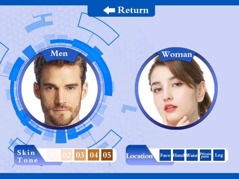 Профессиональное меню с операционной системой для различных требований, параметр может быть автоматически отрегулирован для достижения идеальных настроек в зависимости от различных расы, пола, области обработки и цвета волос, толщины и положения.